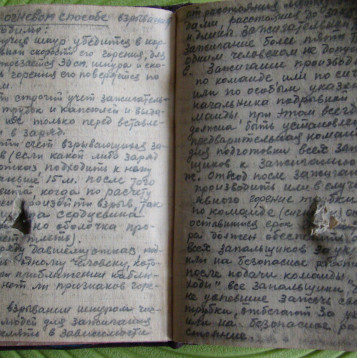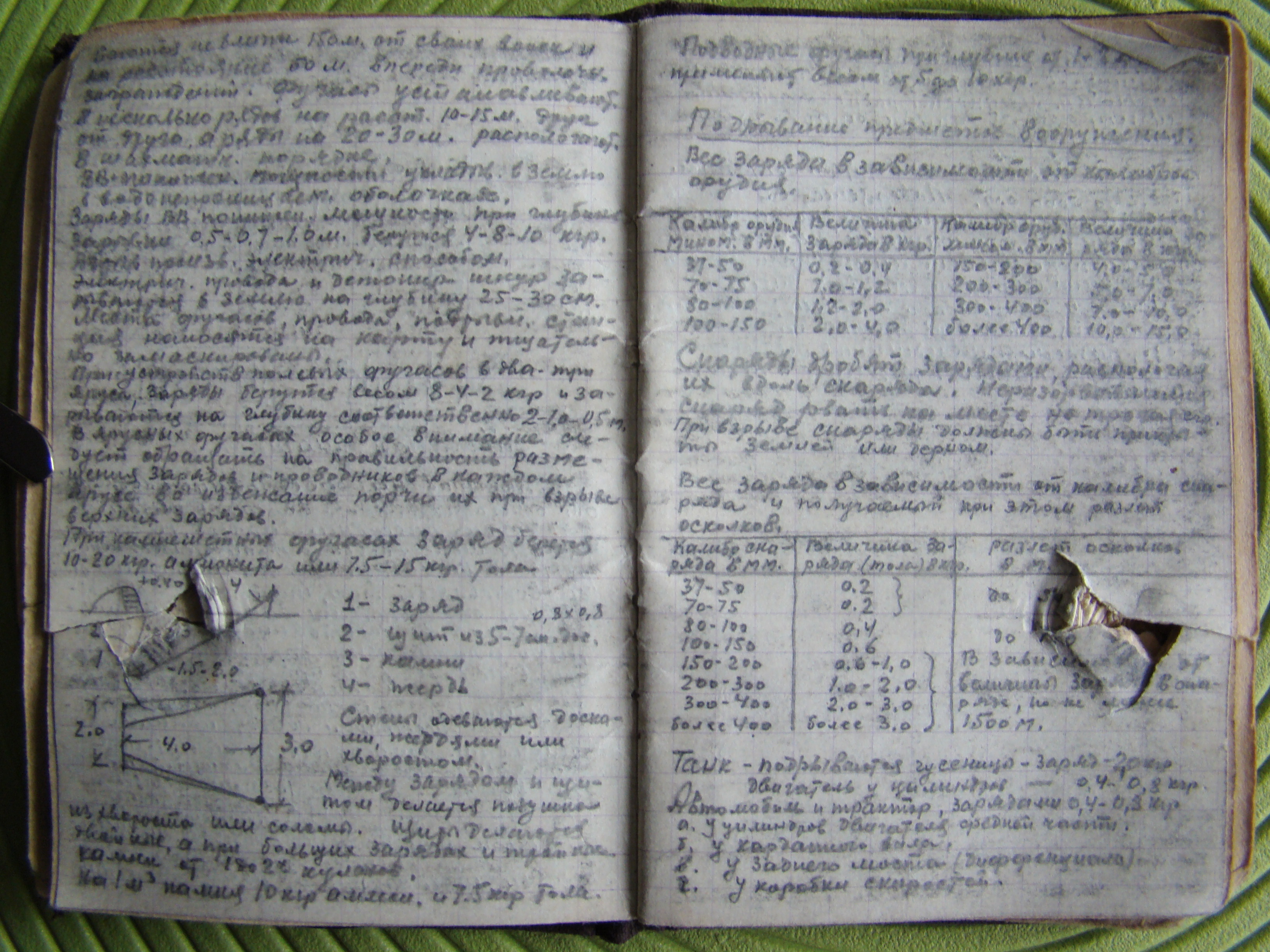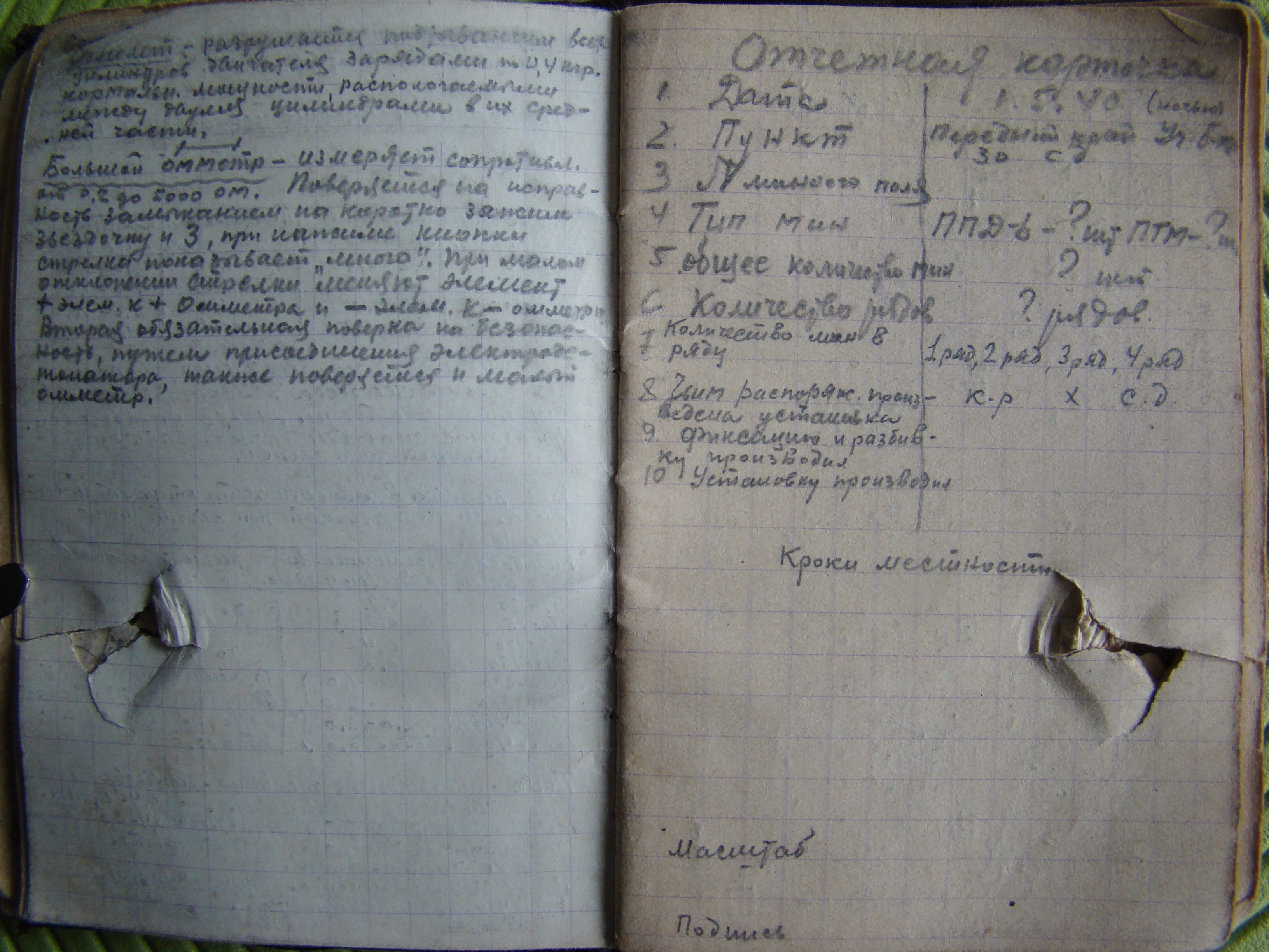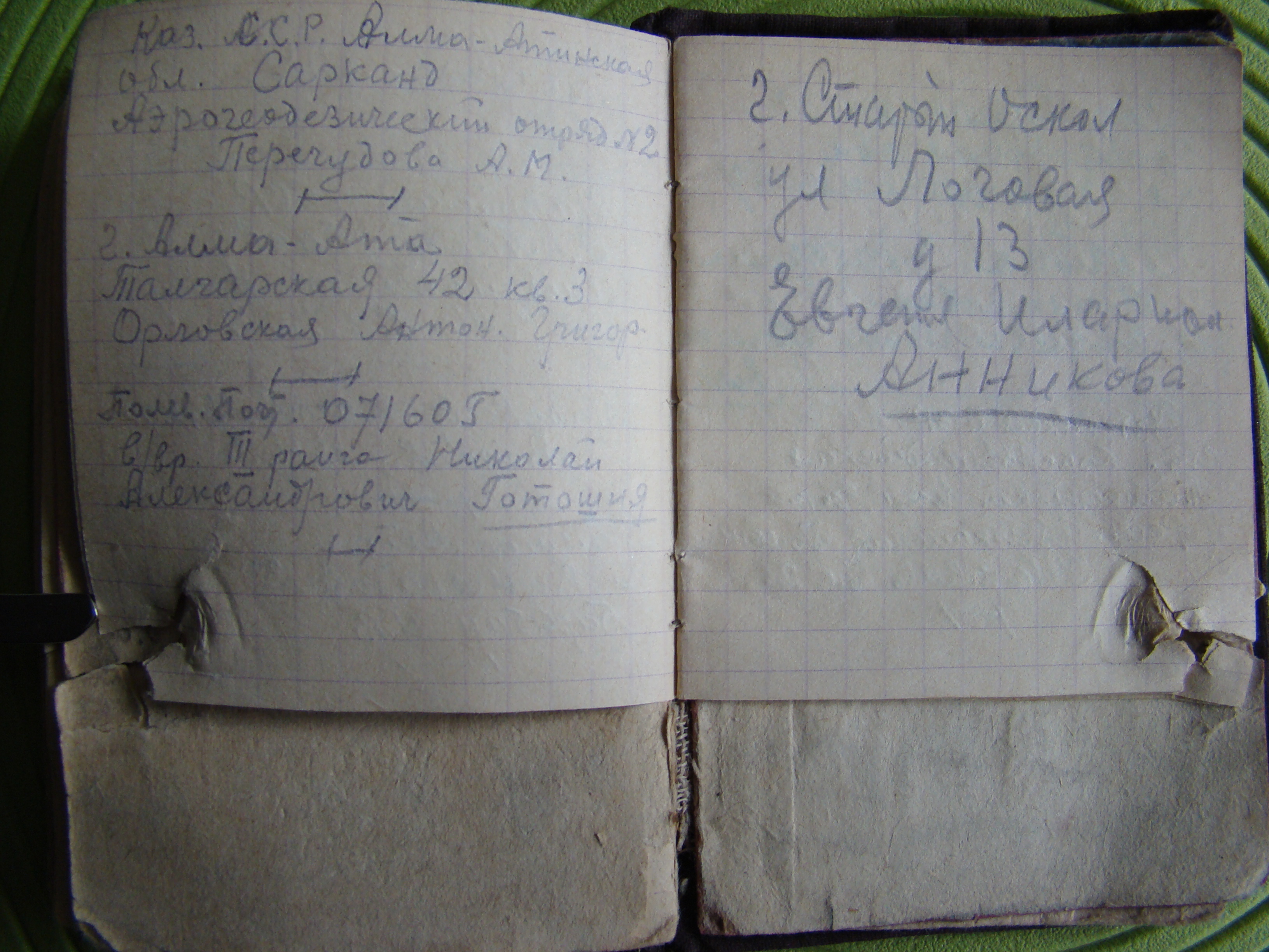 Мой дедушка - Матвеев Александр Васильевич, уроженец г. Юхнова Калужской области. Окончил Московский Инженерно-строительный институт (тогда - техникум)и на фронт призывался по специальности сапер. Дедушка много рассказывал о войне, сама специальность сапера предполагала опасность , буквально на каждом шагу. Подрывался он не один раз , лежал в госпитале, возвращался в строй, и только после ранения в голову его комиссовали, говорили, что долго не проживет, но он прожил до 1973 года. Но один случай с ним произошел и оценить его можно, как чудо. Дедушка был очень аккуратным и все записывал в записную книжку, там было записано все, что было связано с его военной работой, различные расчеты и рисунки. У него на фронте был кошелек, где на веревочке был привязан карандаш, резинка и маленький ножик. В записной книжке также располагался маленький металлический транспортирчик. Записная книжка находилась в левом кармане гимнастерки. По рассказам дедушки, в одной из боевых операций, произошел взрыв и он почувствовал сильный удар и боль в левой половине груди. "Н у все.....готов....", но через некоторое время он пошевелил рукой,....ногой, и с радостью обнаружил, что жив....Оказывается осколок прошел через записную книжку и "уперся" в маленький транспортирчик.... На месте удара был огромный синяк.... Все это мы бережно храним, правда осколок куда-то потеряли....