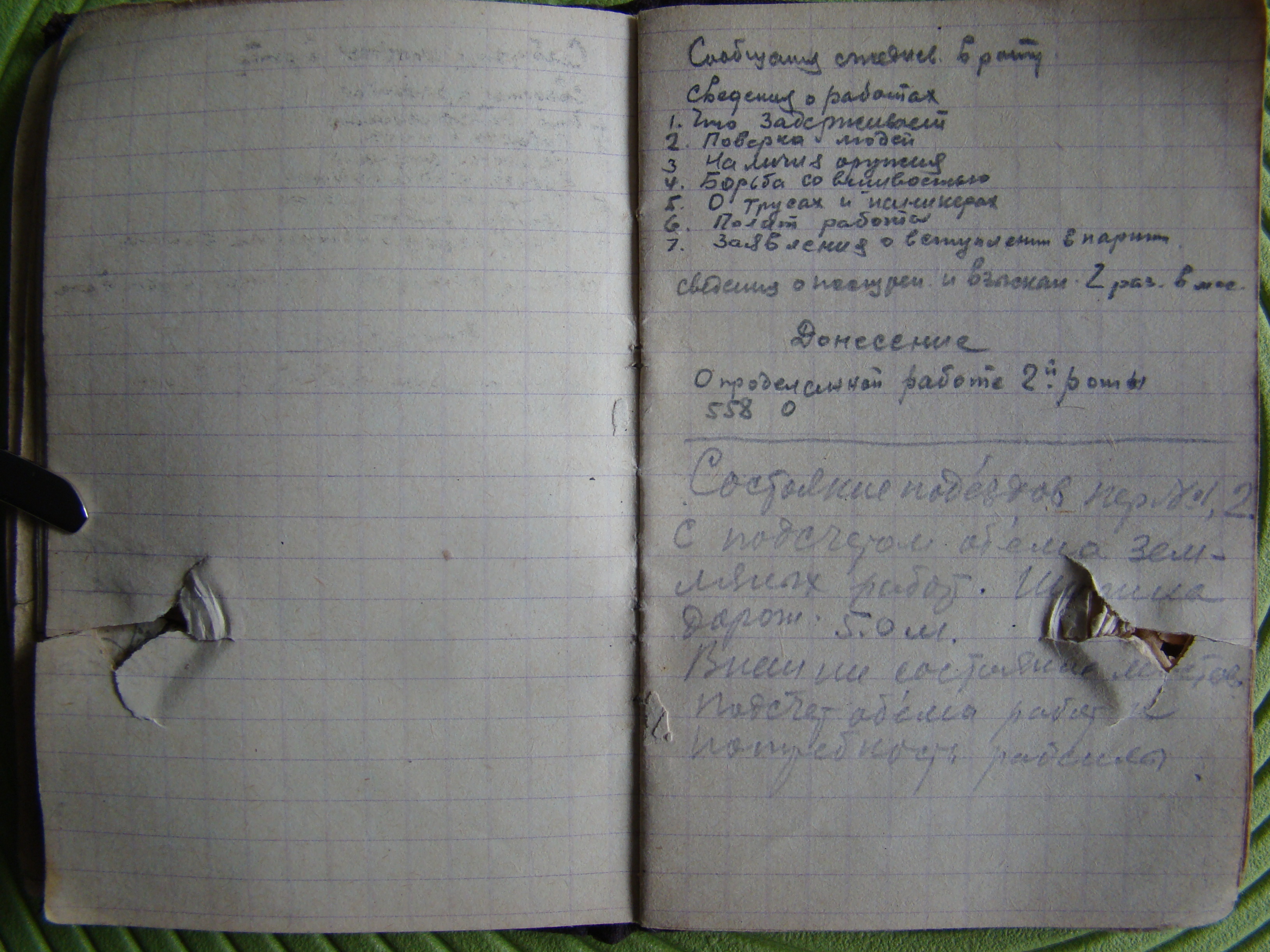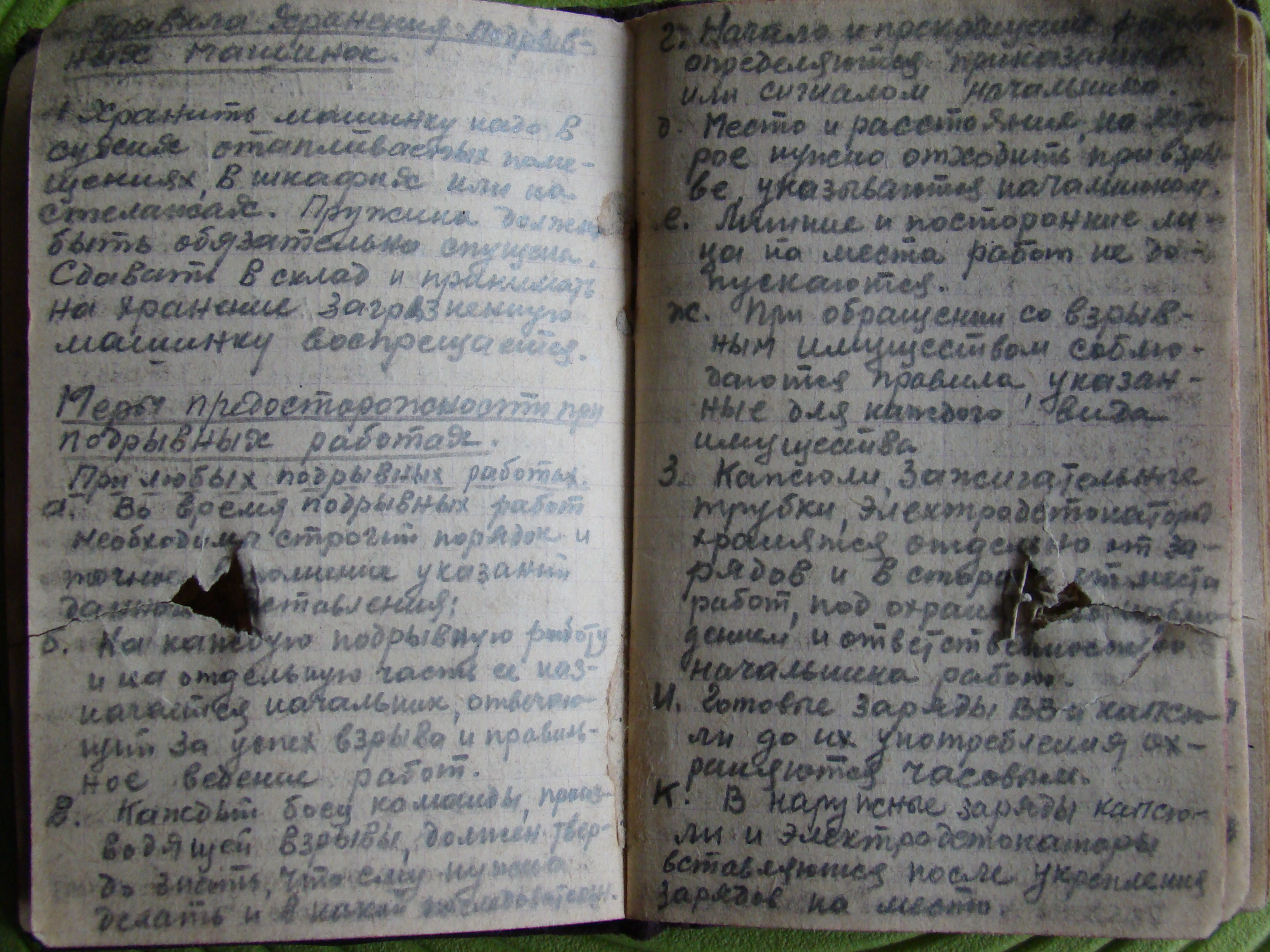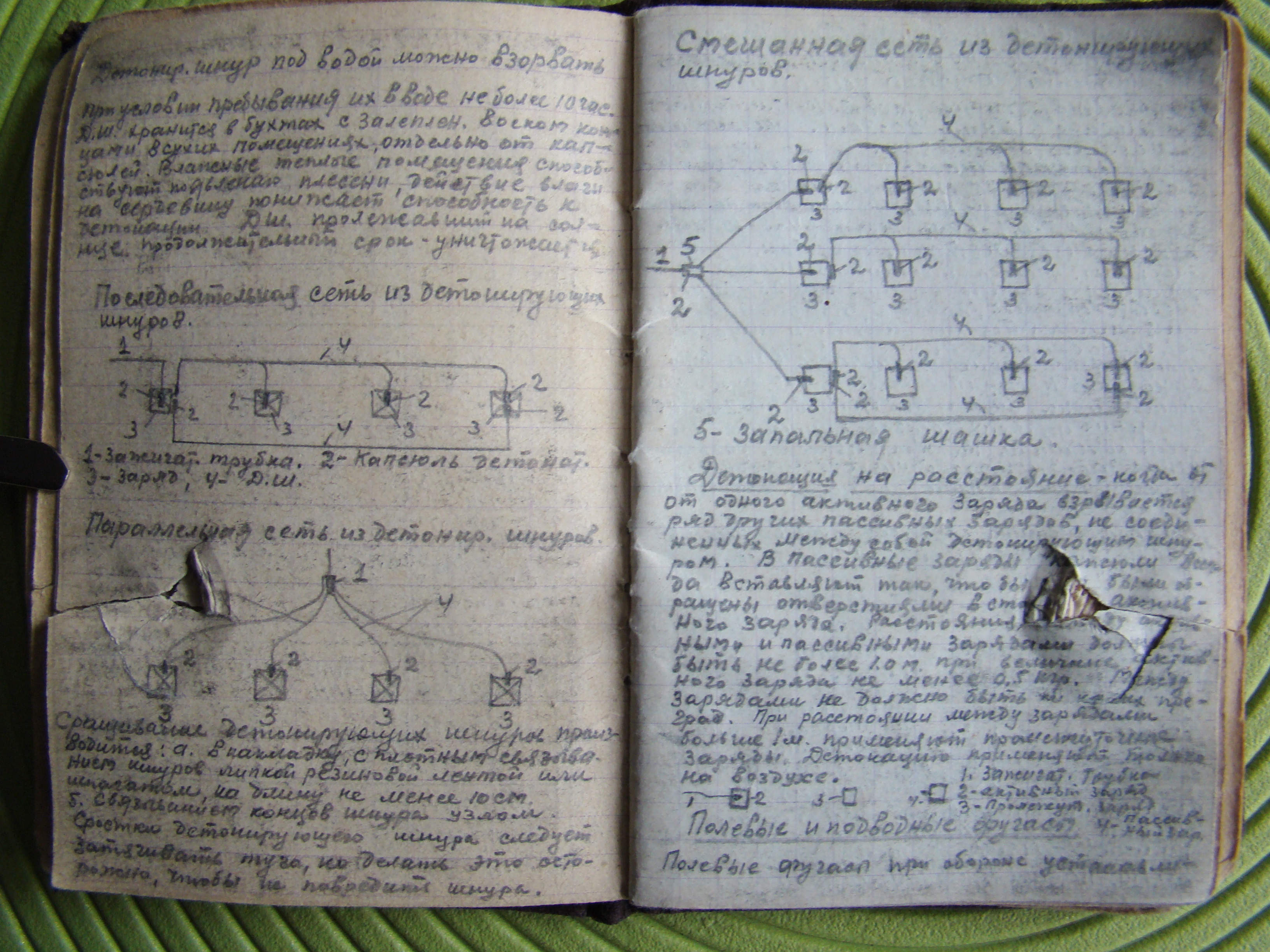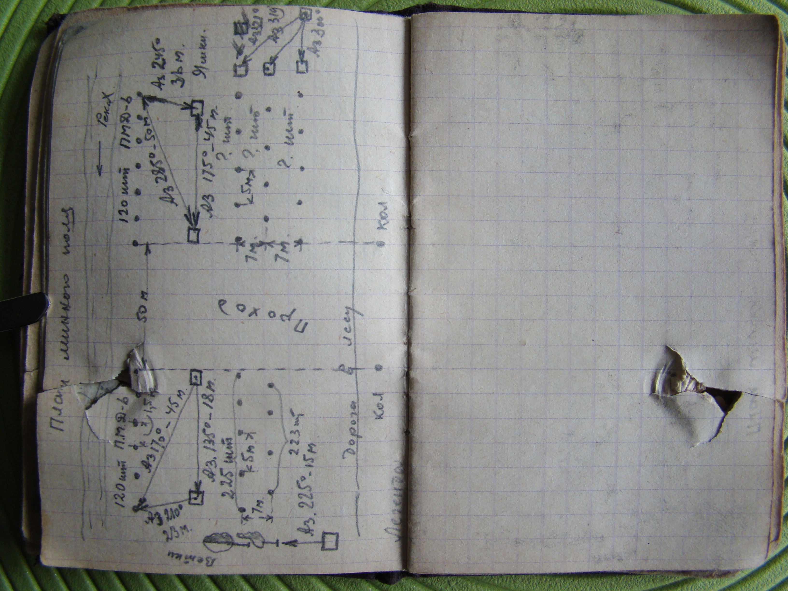 Мой дедушка - Матвеев Александр Васильевич, уроженец г. Юхнова Калужской области. Окончил Московский Инженерно-строительный институт (тогда - техникум)и на фронт призывался по специальности сапер. Дедушка много рассказывал о войне, сама специальность сапера предполагала опасность , буквально на каждом шагу. Подрывался он не один раз , лежал в госпитале, возвращался в строй, и только после ранения в голову его комиссовали, говорили, что долго не проживет, но он прожил до 1973 года. Но один случай с ним произошел и оценить его можно, как чудо. Дедушка был очень аккуратным и все записывал в записную книжку, там было записано все, что было связано с его военной работой, различные расчеты и рисунки. У него на фронте был кошелек, где на веревочке был привязан карандаш, резинка и маленький ножик. В записной книжке также располагался маленький металлический транспортирчик. Записная книжка находилась в левом кармане гимнастерки. По рассказам дедушки, в одной из боевых операций, произошел взрыв и он почувствовал сильный удар и боль в левой половине груди. "Н у все.....готов....", но через некоторое время он пошевелил рукой,....ногой, и с радостью обнаружил, что жив....Оказывается осколок прошел через записную книжку и "уперся" в маленький транспортирчик.... На месте удара был огромный синяк.... Все это мы бережно храним, правда осколок куда-то потеряли....