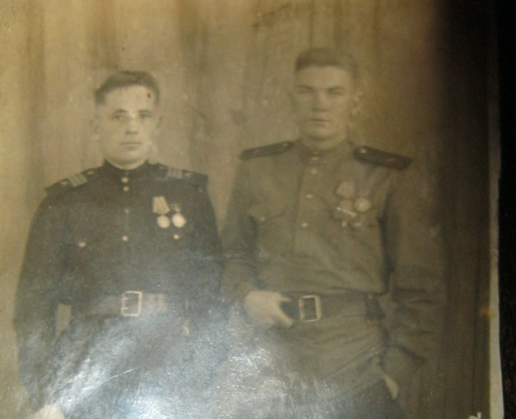 Папа был удивительным человеком! Он очень любил нашу маму и своих 4 детей:Инну, Женю и близняшек-Любу и Веру. Не смотря на то, что наша семья семья жила в маленькой деревне Красавка, каждую весну папа с работы, а это 7км, приносил маме и нам букетики голубых подснежников! Зимними вечерами, когда дрова задорно потрескивали в голандке, папа с шутками-прибаутками рассказывал нам истории из своей фронтовой жизни. И все у него получалось легко, весело... Только теперь понимаем, как было все непросто. Особенно часто мы просили рассказать о том, как он поймал японского шпиона и, как сам Мао Цзедун вручил нашему папе медаль. Мы долго детьми играли с этой диковинной медалью и, как часто тогда бывало, медаль эту потеряли. Не все дети могут похвастаться таким папой, который никогда не поднимал руку на детей, хватало только его строго взгляда. Мы росли в доброй, трудолюбивой, любящей семье! Спасибо, папа, за Победу!