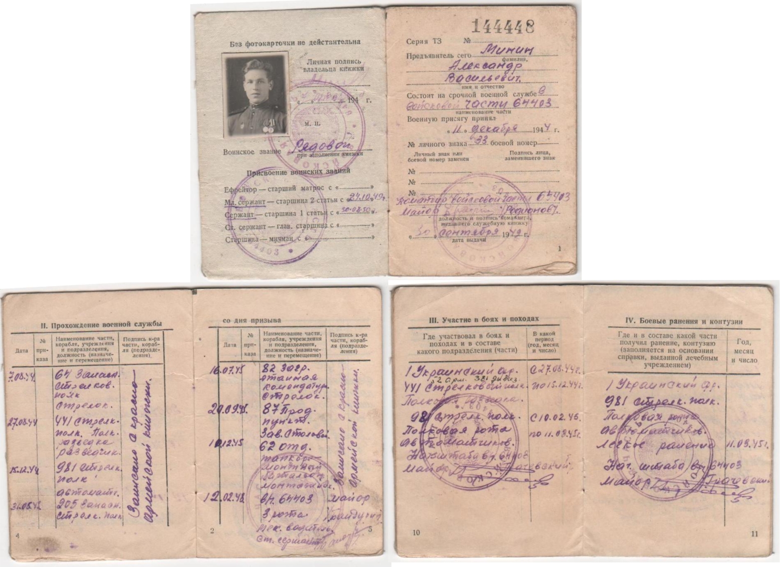 с 10.12.1945 – монтажник 62 отделения танкоремонтного батальона;