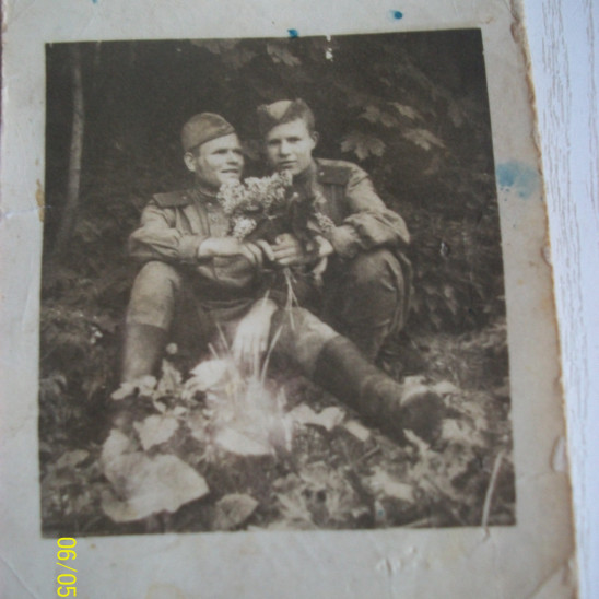 К огромному сожалению и своему стыду, непростительно мало знаю об участии отца в Великой Отечественной войне...Только детские воспоминания сохранились в памяти... Из детского дома п. Осакаровка в Казахстане добровольцем ушёл на фронт. Под Москвой прошёл обучение. Рассказывал о боях под Ленинградом, в Белоруссии, в Прибалтике... освобождал Кёнингсберг, разминировал драматический театр в Минске... Был в оцеплении военнопленных, когда их вели по Москве... Принимал участие в освобождении концлагерей. Был комсомольцем, секретарём первичной комсомольской организации. Служил в пехоте, шёл в рукопашные бои, ходил в разведку.... Был трижды контужен, трижды ранен. Трижды сестре в Казахстан приходили на него "Похоронки", но он, придя в себя, добирался до своих... Расписался на Рейхстаге за себя и своих сослуживцев (от воинских частей возили представителей в Берлин). Встретился в мае 1945 года случайно в Прибалтике с братом-фронтовиком. Сфотографировались с сиренью в руках из трофейного фотоаппарата. Участвовал и в операции с Японией. Был ранен в ногу, но чудом избежал ампутации...с осколками в ступне остался на всю жизнь. После войны закончил военное училище и прослужил в разных родах войск до 1972 года. Вернулся на родину в Лазаревское. Любил жизнь, остался в памяти родных, знакомых как мудрый и добрый человек...