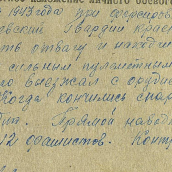 Звание: гв. красноармеец в РККА с 11.1941 года Место призыва: Приморский РВК, Архангельская обл., Приморский р-н Место службы: 66 гв. оиптд 58 гв. сд 2 УкрФ Дата подвига: 28.09.1943 № записи: 21874909 Архивные документы о данном награждении:I. Приказ(указ) о награждении и сопроводительные документы к нему- первая страница приказа или указа- строка в наградном списке- наградной листII. Учетная картотека- данные в учетной картотеке Медаль «За отвагу»