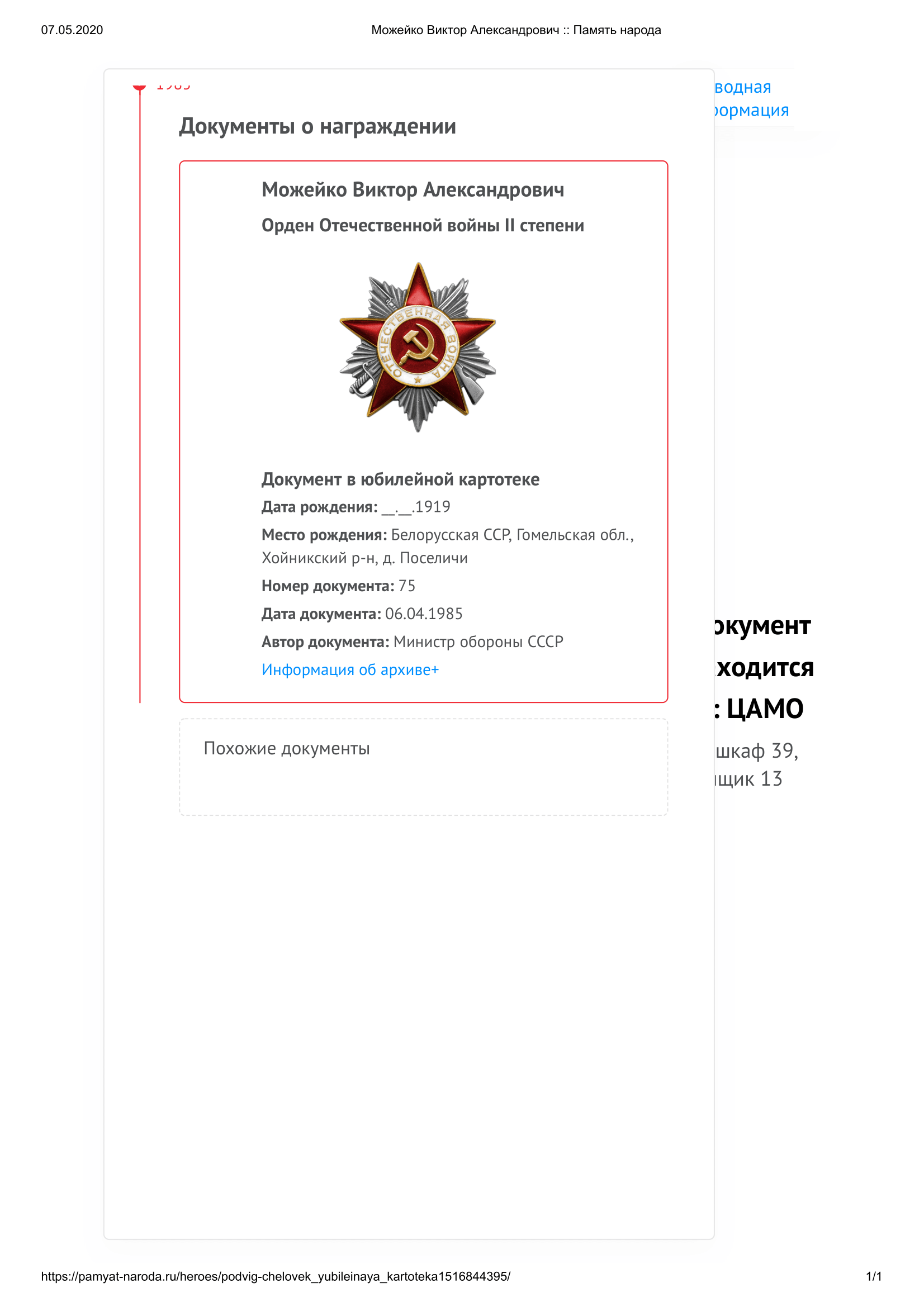 Место рождения: Беларусь, Гомельская область, Хойникский район, д. Поселичи