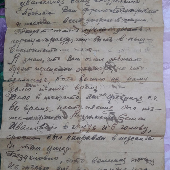 Место призыва Нерехтский РВК. Поступил на службу ...08. 1941 год. 1188 сд, 357сп, 1 Прибалтийский фронт. Получены два ранения. Ранен легко 28.09.42 г. и тяжело 24.12. 42 г. Награжден медалями За Отвагу 09.11.43 г, Орденом Славы 3 ст. 12.08.44 г., медалью За Отвагу 31.01.45 г.