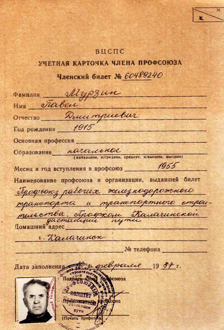 В Калачинской дистанции пути работал дефектоскопистом. Трудовой железнодорожный стаж 20 лет.