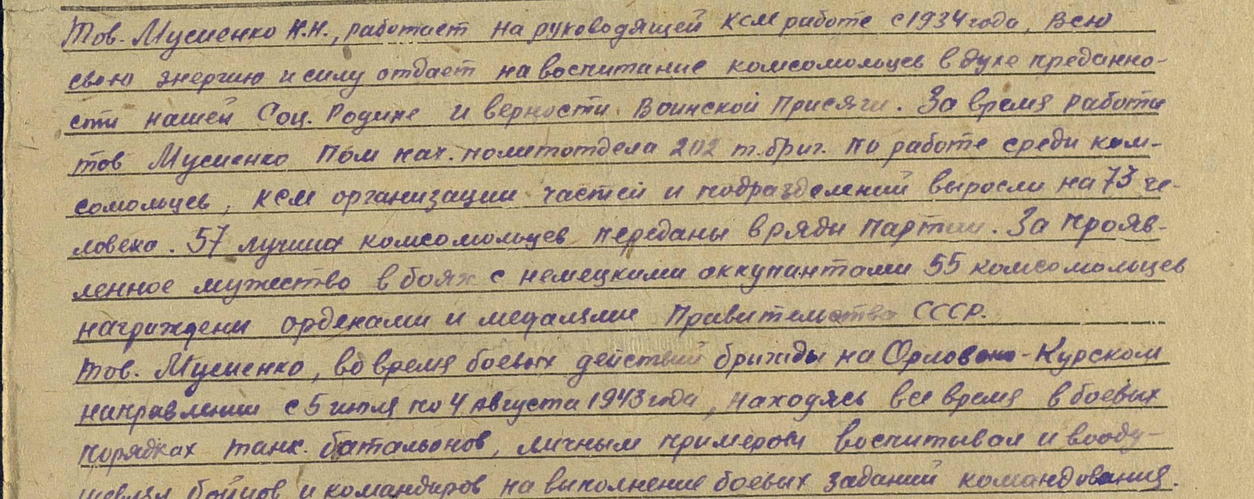 Мусиенко Николай Никитович. 5.12.1918 г.р. Иркутская обл. Прошел всю ВОВ, оборонял Керчь, Малую Землю, Кавказ. Освобождал Украину и Польшу. Закончил войну в звании капитана.