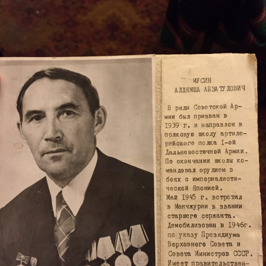 В ряды Советских войск был призван в 1939 году и направлен в поковую школу артилерийского полка I-ой Дальневосточной Армии. По окончании школы командовал орудием в боях с империалистической Японией. Май 1945 встретил в Манчжурии в звании старшего лейтенанта. Демобилизован в 1946 году. Имеет правительственные награды