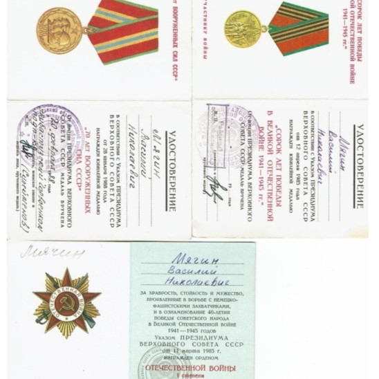 Мячин Василий Николанвич, родился в 1921 году 8 августа в Кировской области Молотовского района. После окончания школы пошел работать шофером. В 1940 году призвали в армию с Кировской области, Нолинского района. Служил в Инкермане под Севастополем, шофером в звании рядового. Там его и застала война и он начал защищать Крым от фашистов. В годы Великой Отечественной войны Василий Николаевич подвозил на фронт под Севастополь на передовую снаряды, боевую технику и продукты, а также перевозил раненых красноармейцев в госпиталь г. Поти Грузия, а обратно в Севастополь привозил уже здоровых бойцов на фронт. В 1942 году за Севастополь шли ожесточенные бои, город был окружен фашистами. Колонна машин двигаясь в город Севастополь, наткнулась на высадившихся в то время вооруженных немецких десантников. Немцы стали в упор стрелять по нашим машинам. Не у всех оказалось было оружие, защищаться было не чем. Рядовой Мячин В.Н. находился как раз в первых рядах этой колонны. Получил тяжелое ранение и очень долго лежал на лечении в госпитале. Очень много тогда погибло солдат, но его спасли красноармейцы. По пути в госпиталь по морю немецкие бомбардировщики бомбили корабли, на которых перевозили раненых, но все таки большая часть раненых смогла добраться до г. Поти. После госпиталя, рядового Мячина В.Н. комиссовали по состоянию здоровья, но он остался в тылу и помогал в борьбе с фашизмом. В то время в Персидский залив приходили торговые суда, это была помощь Американцев Советскому Союзу и он стал перевозить на автомашине военные грузы с Персидского залива через Иран в СССР. Был награжден медалью и Орденом Отечественной Войне 1 степени. Так же он был награжден к 40 летию победы в Великой Отечественной Войне и 70-летию Вооруженных сил СССР - медалями. Умер в 1988 году.