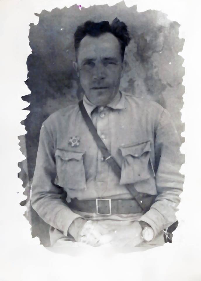 Петр Тимофеевич Назаренко, мой прадедушка. У нас практически ничего не осталось от дедушки, так как было много переездов и много было утеряно. Остались только фотки и свидетельство о смерти. Петр, по рассказам бабушки- дошел до звания офицера. Он стоял в болоте 3 суток на пролет и держал оборону, служил на фронте. Был ранен, но выжил. Дедушка прошел всю войну, от начала и до конца.