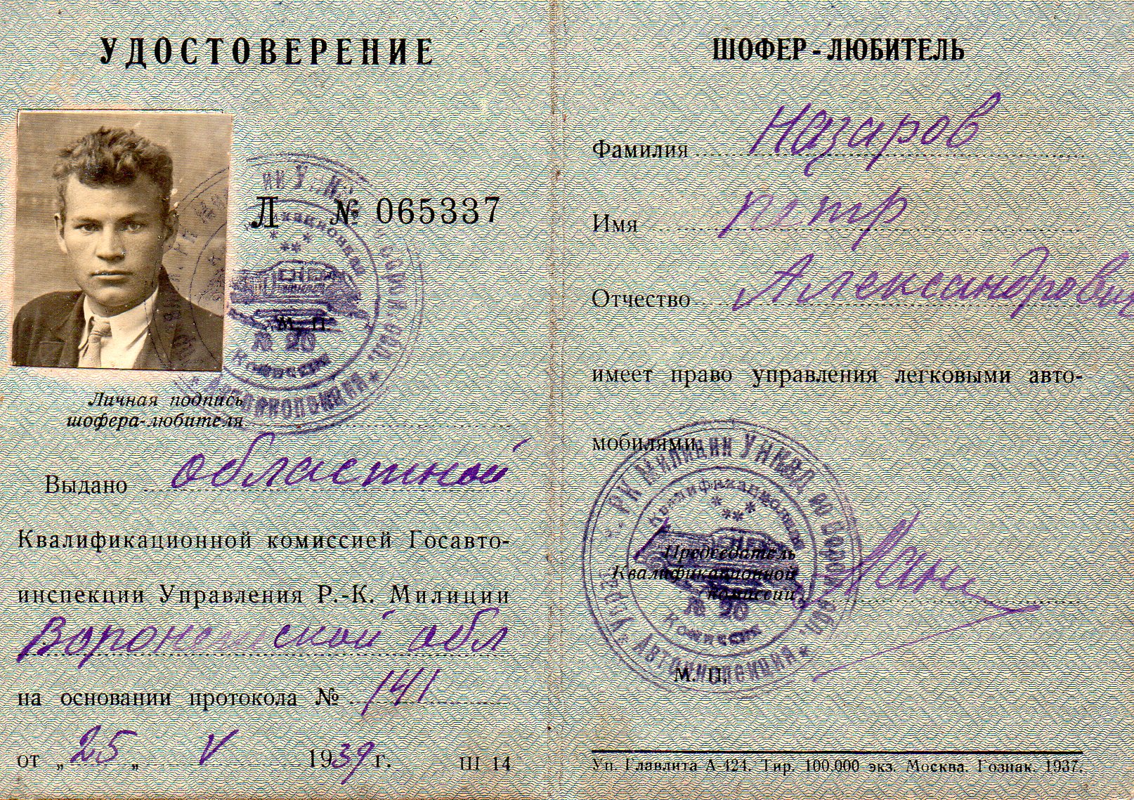 В 1940г.закончил Воронежский мединститут,сразу же был призван в ряды Советской Армии,10 мая 1941г.родилась дочь,Валентина,которую ему не удалось увидеть.С началом ВОв был направлен под Москву,в звании военврача 3 ранга. 30 ноября1941г.пропал без вести.Жена его,Назарова Галина Николаевна,тоже врач,добросовестно и самозабвенно работала в тылу,Стала Заслуженным врачом РСФСР, всю жизнь надеялась на возвращение мужа и ждала его.Пётр Александрович был человеком широкой Души и разнообразных талантов, хорошим музыкантом.
