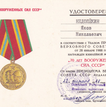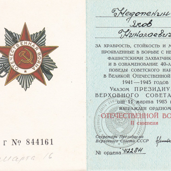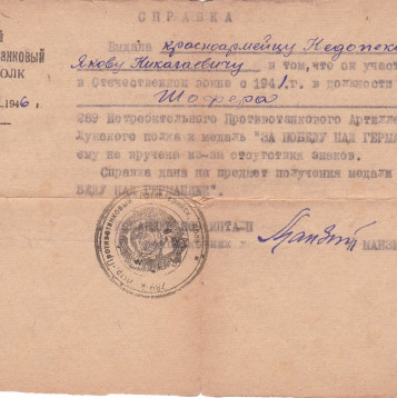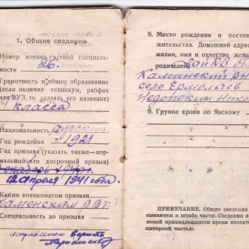 Призван в апреле 1941 в с. Ермольчево Каменского района Западно- Казахстанской ССР. Летом 1941 был ранен, до декабря 1941 года находился на излечении. После выписки был признан годным к нестроевой службе и продолжал службу при артелерийском полку. Демобилизован в 1946 году. Переехал в р.п. Озинки. До выхода на пенсию работал шофером скорой помощи в ЦРБ р.п.Озинки. Вырастил и воспитал четверых детей. До конца участвовал в общественной жизни.