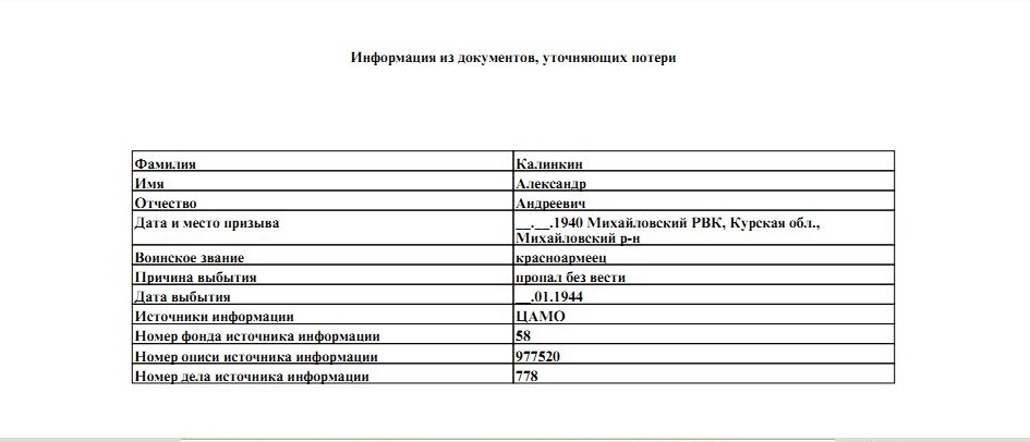 А Калинкины Александр, Иван и Федор не вернулись с войны.