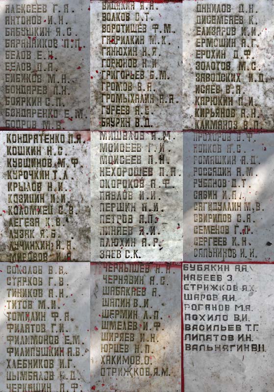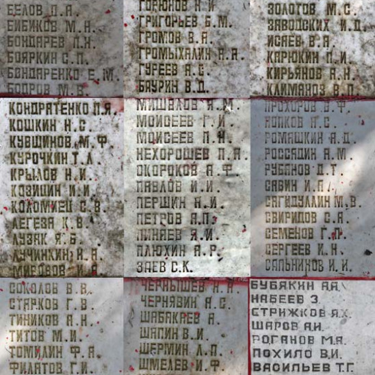 фамилии, имена и отчества похороненных воинов. Подход к памятнику – три