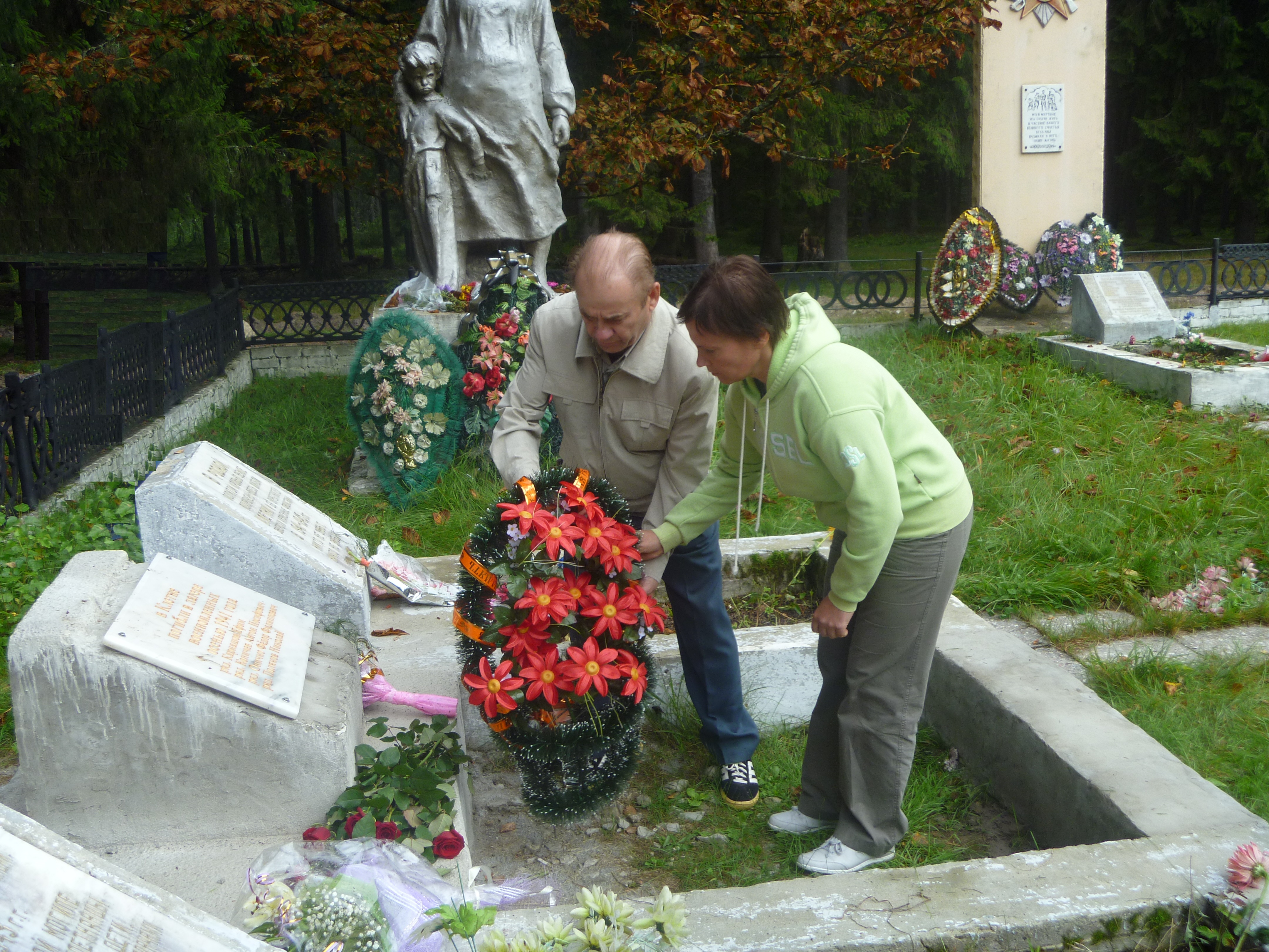 2. Сын Федора Филипповича с дочерью Светланой возлагают цветы.