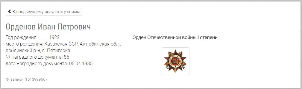 Орденов Иван Петрович родился 21 декабря (кстати, дата рождения Сталина) 1922 года в с. Белогорка Хобдинского района Актюбинской области Казахской ССР. В 1941 году закончил Илецкое Педагогическое училище. В июле 1941 года был призван на фронт, служил стрелком в 79-ом отдельном лыжном батальоне 33-ей Дивизии Третьей Ударной Армии. В боях за д. Мамоновщину, Сысоево, Кучешнино, г. Холм проявил себя как Лучший боец (документы прилагаются). Награжден медалью «За отвагу» (июнь 1942 г.).