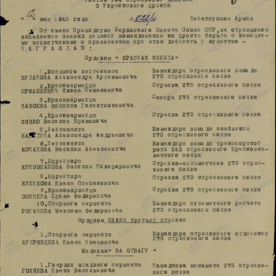 Воинская часть 273 сп 104 сд 3 УкрФ под командованием генерала армии Коневым И.С.