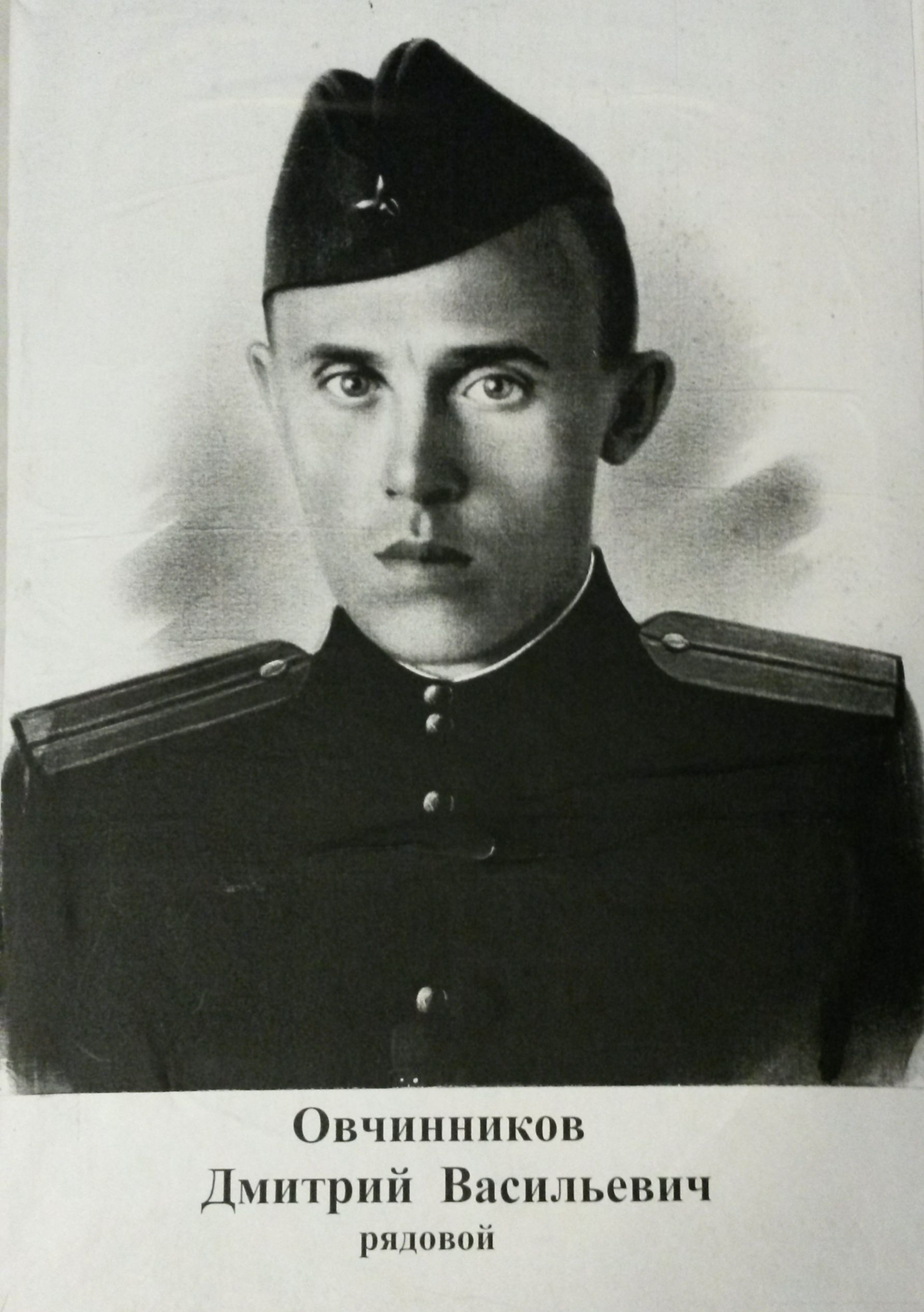 Боевой путь ветерана Овчинников Дмитрий Васильевич, мой дедушка. Воевал на Карельском фронте  в отдельном стрелковом батальоне, 65 морской стрелковой бригады. Был ранен, после госпиталя вернулся в строй. За стойкость и смелость в бою, за доблестный подвиг  удостоен  посмертно орденом "Красной звезды."