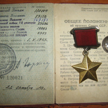 г. № 59586), Красной Звезды (1943 г. № 130004), медалью