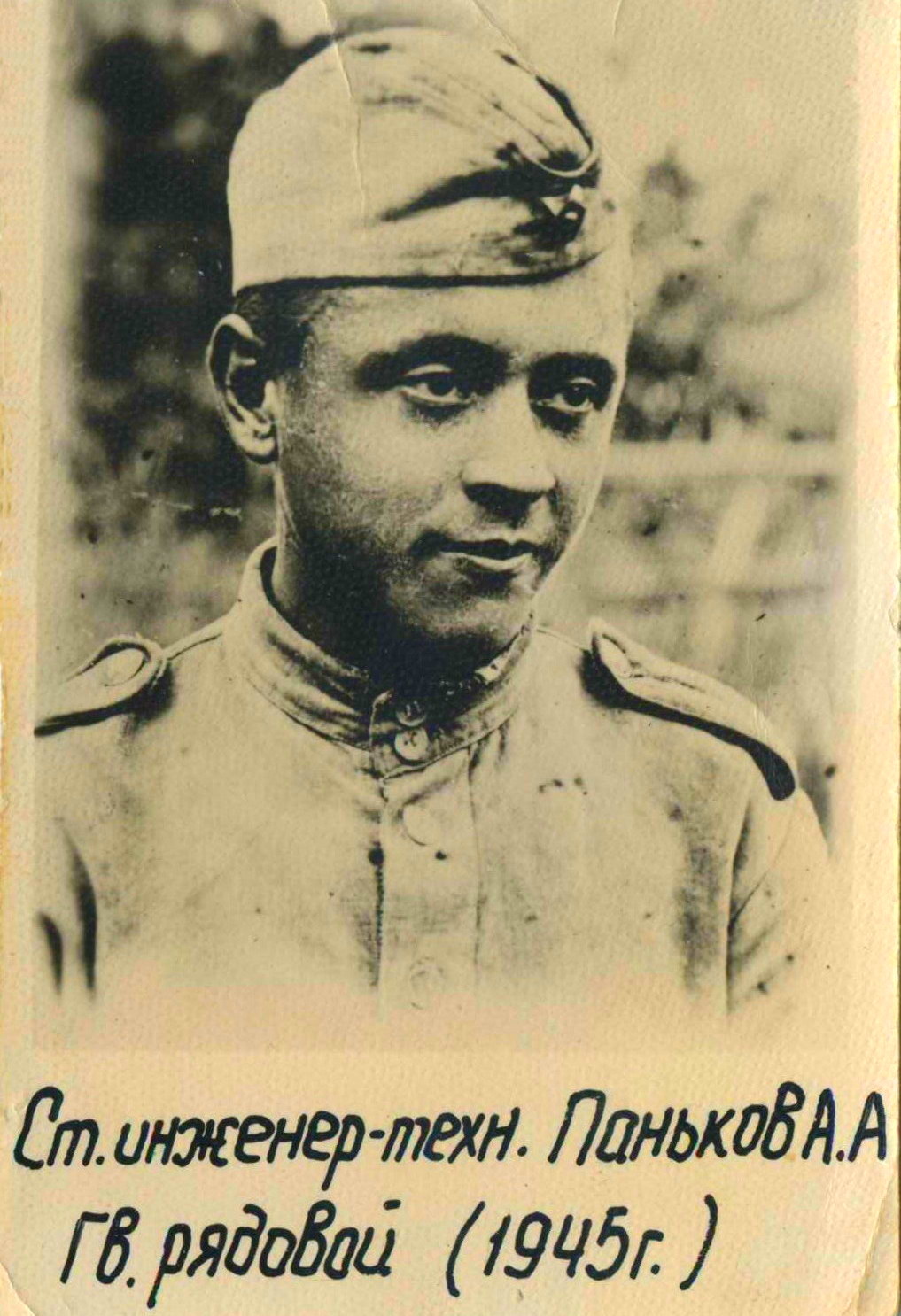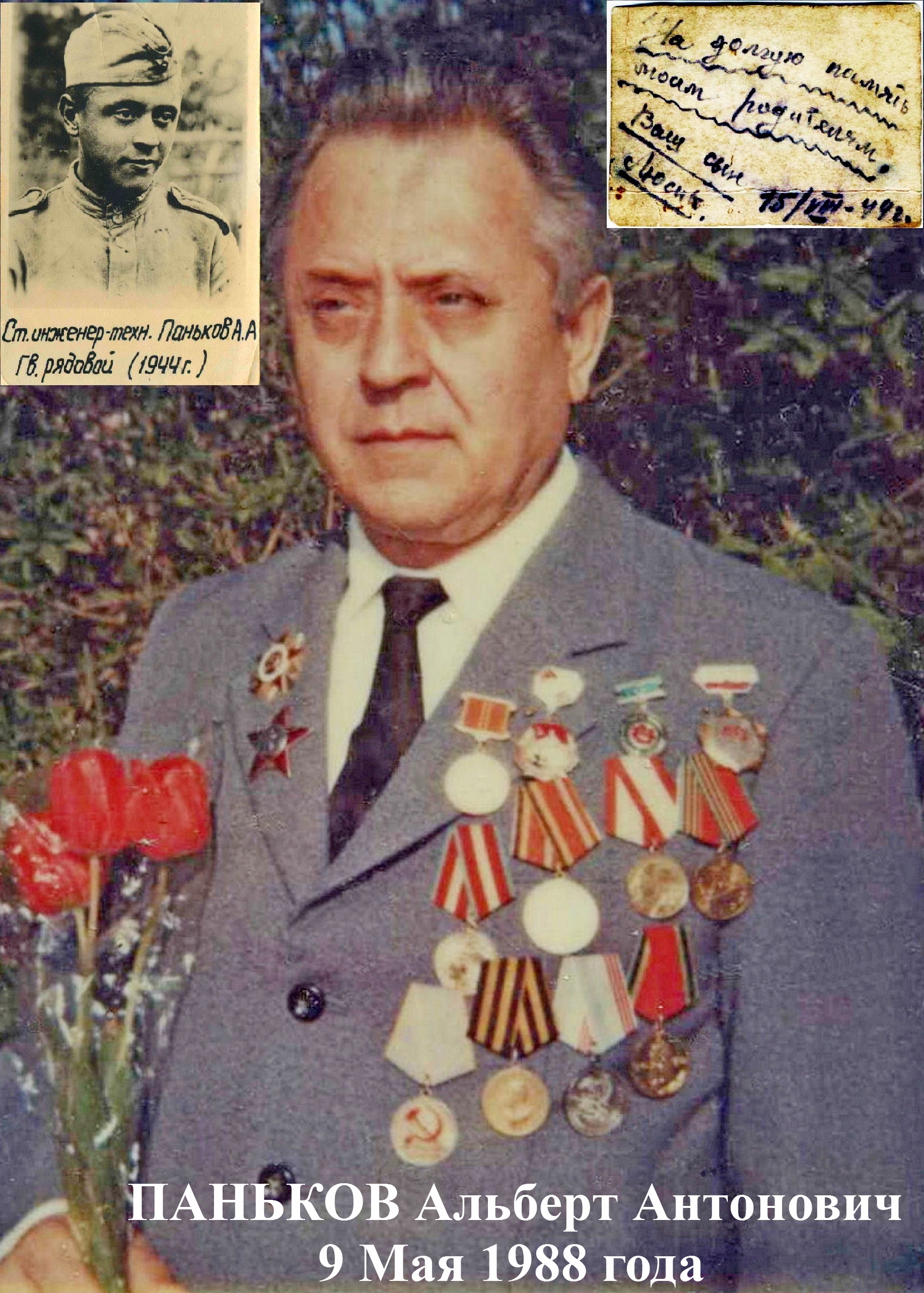 После освобождения Проскурова (ныне Хмельницкий ) отец был призван в армию 1-го апреля 1944 года. Был связистом. В ходе освободительных боёв в Словакии у городка Кошице был ранен осколком снаряда в ногу. Войска продолжали наступать, а отец остался лежать на поле боя в течении суток. Потерял много крови и в результате ранения начиналась гангрена. Так и погиб бы там, но у него в подразделении был земляк из Проскурова, который во время боя видел, что отца ранили. На передышке он вернулся на поле боя и нашёл отца. Тем самым спас ему жизнь, отправив в госпиталь. Отцу, девятнадцатилетнему парню, ампутировали ногу. Всю жизнь отец ходил с протезом и палочкой.