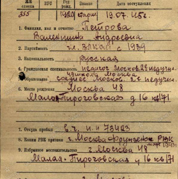 Родилась Валентина Андреевна в 1920 году в Мичуринске в многодетной семье. Окончив школу, бойкая, любознательная, активная комсомолка рвется к необычному. Валя поступает в Ленинградское мореходное училище на отделение штурманов дальнего плавания. Но окончить училище не удалось – началась война.Ее направляют в Свердловск, в школу НКВД. Отсюда она уходит на фронт. Смоленск, Орша, встреча победы в Берлине. А затем три года в группе оккупационных войск в Берлине, Потсдаме и Веймаре. Затем возвращение в родной Мичуринск.В 1949 году Валентину Петрову направляют в Казань, через год в Бугульму. Этому городу будет посвящена вся оставшаяся жизнь. Здесь Валентина Андреевна работает в комитете Госбезопасности. А с 1956 года работает в органах МВД - оперуполномоченным ОБХСС, следователем уголовного розыска, охраняя порядок и покой жителей города строго следуя святому принципу правоохранительных органов «Чистые руки, холодная голова, горячее сердце». В 1977 году Валентина Андреевна уходит с почетом на пенсию, но продолжает активно заниматься общественной работой.Валентина Андреевна убежденный и верный коммунист с более 50 летним партийным стажем.Являлась активным общественным деятелем, прекрасным воспитателем молодежи и подрастающего поколения выступала в школах, училищах, техникумах, клубах и музеях города. В течении 20 лет она возглавляла городской «Клуб ветеранов», входила в городской совет ветеранов. Являлась почетным гостем клуба «Воинов Афганцев».Ее грудь украшают боевые и служебные ордена и медали.Ей прекрасно подходит высокое звание патриота нашей Родины.