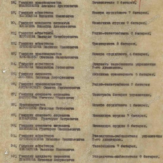 Артиллерийской дивизии РГК Барановичского Военного Округа в звании