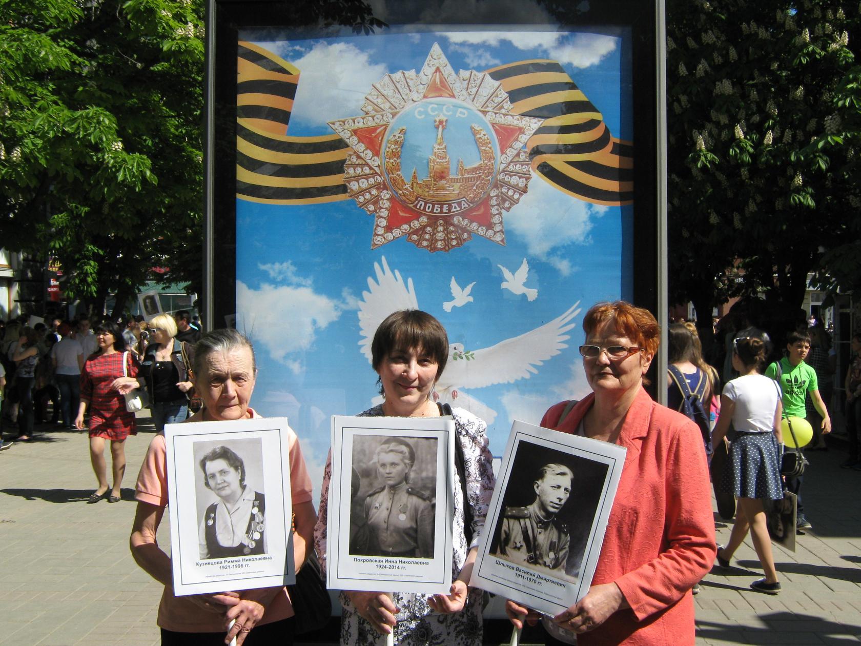 До войны Покровская И.Н. жила с семьёй в г. Пензе. Когда началась война, Инна пошла работать с сестрой Риммой на военный завод, делающий снаряды для фронта. В декабре 1942 г. сёстры и ещё две их подруги, Надя Удалова и Маша Климашина, пошли в военкомат проситься добровольцами на фронт. Они выучились на радиотелеграфисток. Направили их в 732 отдельный батальон связи 269-й стрелковой Рогачёвской Краснознамённой ордена Кутузова дивизии. Они прошли славный и трудный боевой путь практически до Берлина. В Польше, во время одной из бомбёжек, Надюша Удалова погибла, а Инна была ранена. После госпиталя она догнала свой батальон и продолжила боевой путь. Командиром их радиовзвода был Шлыков Василий Дмитриевич. Впоследствии он стал мужем Риммы, сестры Инны. Конец войны застал их на Эльбе. Инна была награждена медалью "За отвагу" и орденом "Красной звезды", а также медалями "За взятие Кенигсберга", "За взятие Берлина", "За победу над Германией". Покровская Инна Николаевна прожила долгую и достойную жизнь. Вместе с сестрой они проработали на Саратовском заводе зуборезных станков более 25 лет. Сёстры принимали активное участие в жизни завода. Они основали и подняли на высокий уровень заводской драм. театр. Среди коллектива завода они пользовались большой популярностью и уважением. Римма умерла в 1996 г. В 2014 г. Инна отметила свой 90-летний юбилей. В ноябре этого же года её не стало. Добрая память о ней живёт в сердцах близких и просто знающих её людей. Дочка, внук и близкие родственники гордятся ей и всегда будут о ней помнить.