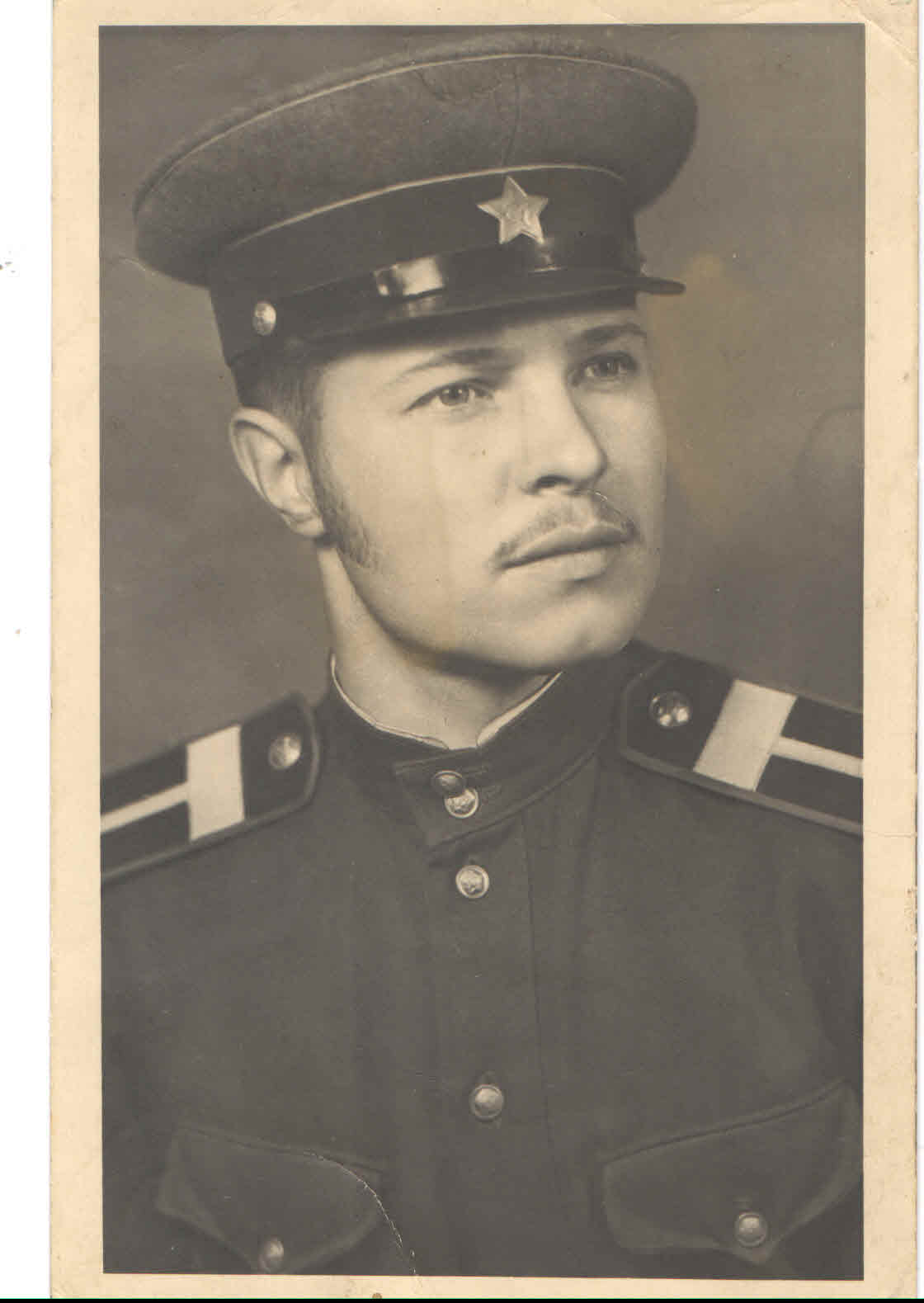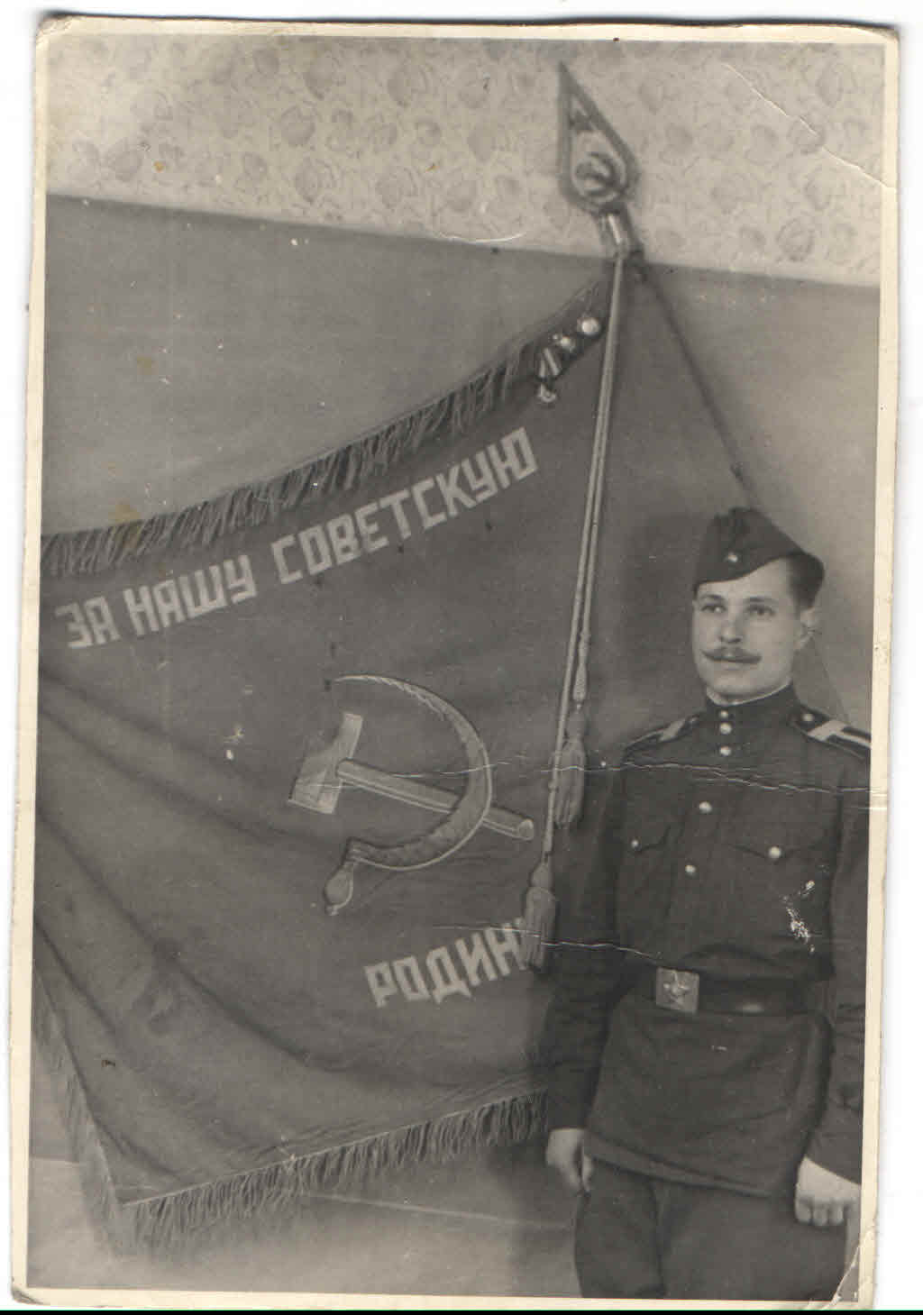 Ушел добровольцем на фронт в 18 лет, принял присягу 4 апреля 1944 года. Участвовал на фронтах в ВОВ, 3-й Украинский фронт, должность наводчика. Остался на сверх срочную службу в Берлине до 10.11.1950 года. Капитан запаса.