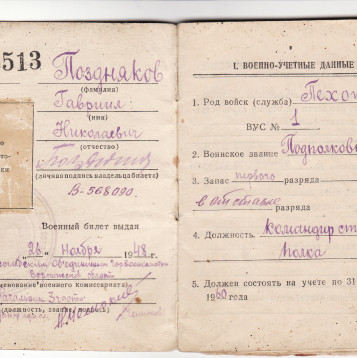 Поздняков Гавриил Николаевич.«Родился 26 марта 1900 года в селе Лаврово Орловского район