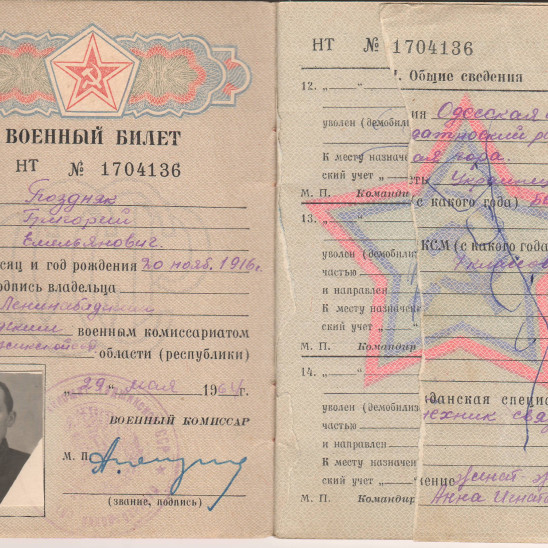 Позняк Григорий Емельянович был призван комиссией Фрунзовского района Одесской области в 1938 году. В Великую Отечественную войну служил в 656 стр. полку командиром взвода связи. В конце 1941 года попал в плен. В плену по рассказам деда он выжил, только из-за отсутствия вредных привычек, обменивал табак, который выдавали, на хлеб, пытался соблюдать хоть какую-то гигиену. Дед умер, когда мне было 4-ре года, поэтому большей информацией не владею.