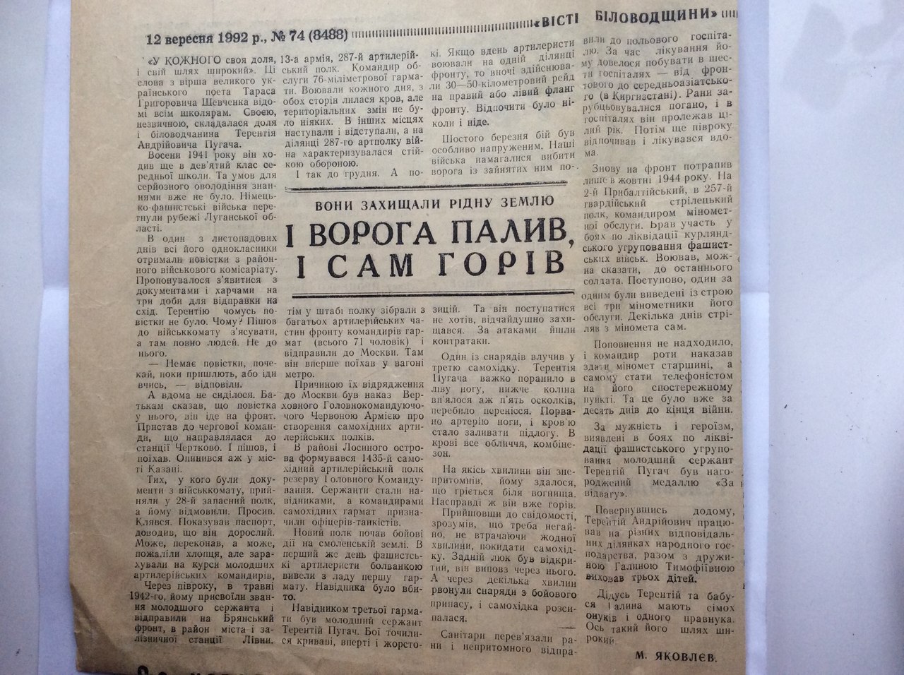 Мой дедушка и я им горжусь! Пугач Терентий Андреевич (10,11,1923г-20,11,2001г) воевал младшим сержантом - 1942г брянский фронт 13-я армия 287-й артиллерийский полк, был тяжело ранен, 1944г.- 2-й прибалтийский, 257 гвардейский стрелковый полк, командиром минамётного расчёта, участвовал в ликвидации курляндской групировки фашистских войск, встретил победу на берегу озера Балатон, награждён медалью ,,За Отвагу"!!!!!