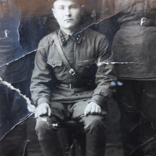 В 1938 г. Александра Ивановича забрали служить в Красную Армию. Службу он проходил в Луганске (Ворошиловграде). В марте 1941 г. он прислал письмо и фотографию, где изображен вместе со своими сослуживцами. Когда подходил к концу срок службы в армии, началась Великая отечественная война. И он сразу ушел на фронт. Так Александр Иванович не видел свою семью 7 лет.