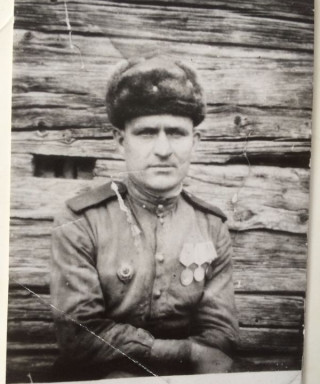 Ушел на войну 22 июня 1941, ему было 33 года. Воевал на Западном фронте, потом на 2-м Прибалтийском и 3-м Прибалтийском, в 1945 - м воевал на Ленинградском фронте имеет благодарности от Сталина за оборону Москвы, за г. Остров, за г. Ригу.
