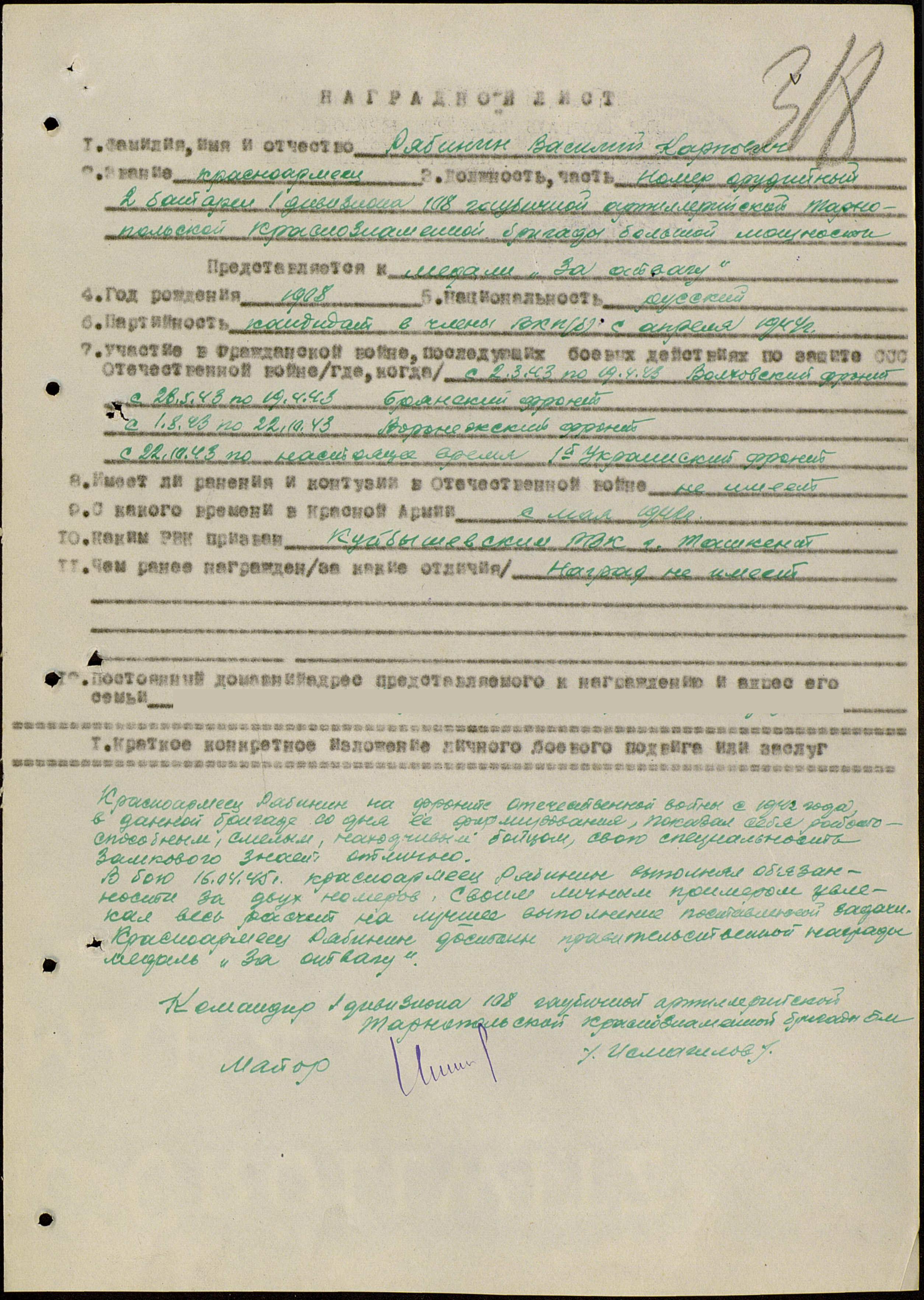 22.10.1943 до окончания воинской службы 1й Украинский фронт
