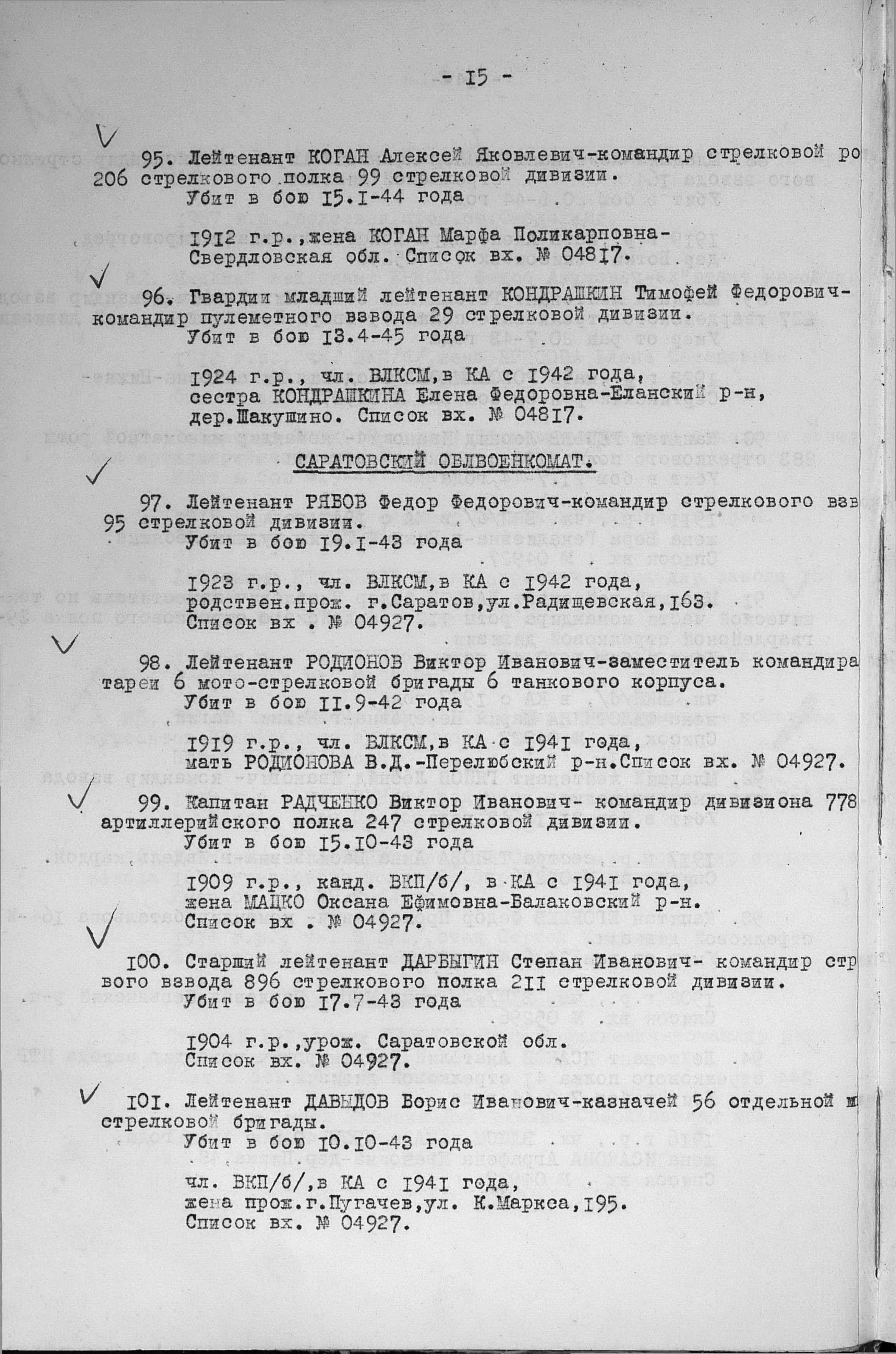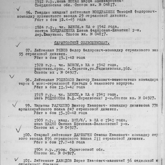 Лейтенант Рябов Федор Федорович родился в 1923 году в селе Букатовка Воскресенского района Саратовской области, в крестьянской семье. Член ВЛКСМ. На Войну был призван в 1942 году.