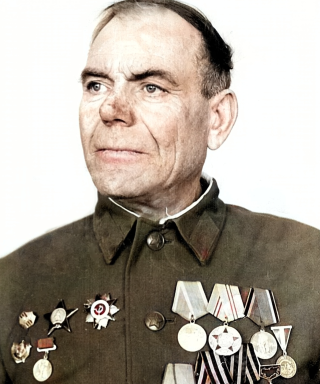 Призван на фронт Семиярский РВК, Павлодарская обл. в 1939 г. Командир отделения тяги 995 ап 49 А Западного фронта 143 ап бр 2 Белорусского фронта ВС 49 А 2 Белорусского фронта. После войны вернулся домой, женился, вместе с супругой после рождения воспитывал двух дочерей - двойняшек. По профессии - шорник.