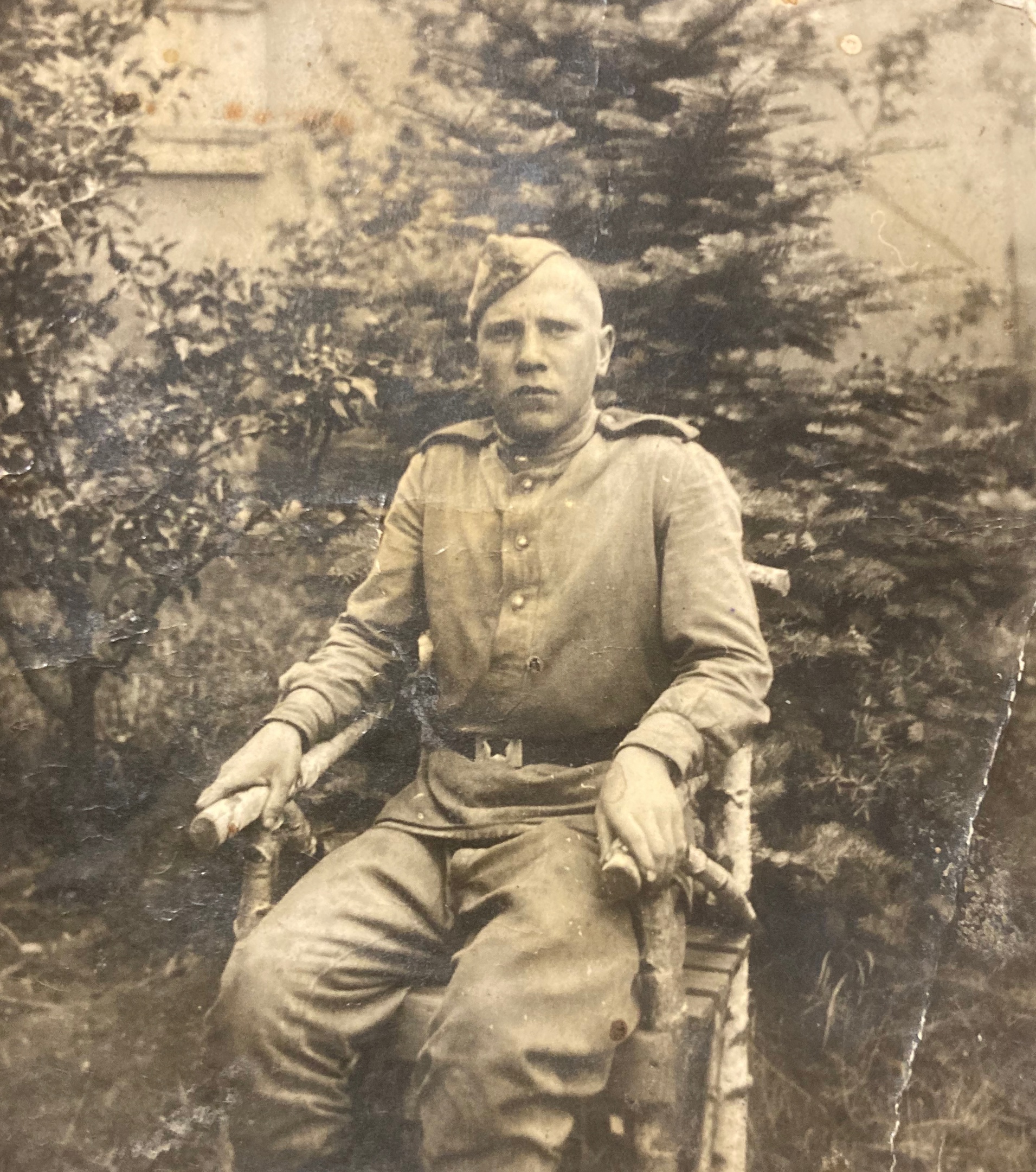 Родился в 1925 году в городе Лысьва Пермского края. До призвания в армию работал на заводе токарем. В армию был призван по достижении совершеннолетия, 10 декабря 1942 года Сталинским Р.В.К. Служил в 27/28 гвардейском стрелковом краснознамённом полку, 2 стрелковой роте. За время войны получил звание ефрейтора. Был ранен, потерял фалангу пальца, лежал в военном госпитале. После реабилитации вернулся в строй и дошёл до конца войны. Конец войны встретил вероятно в Берлине, также был в Дрездене. После войны в 1946 году был демобилизован как годный к нестроевой службе. Работал на оборонном предприятии - Заводе имени Калинина, городе Свердловске.