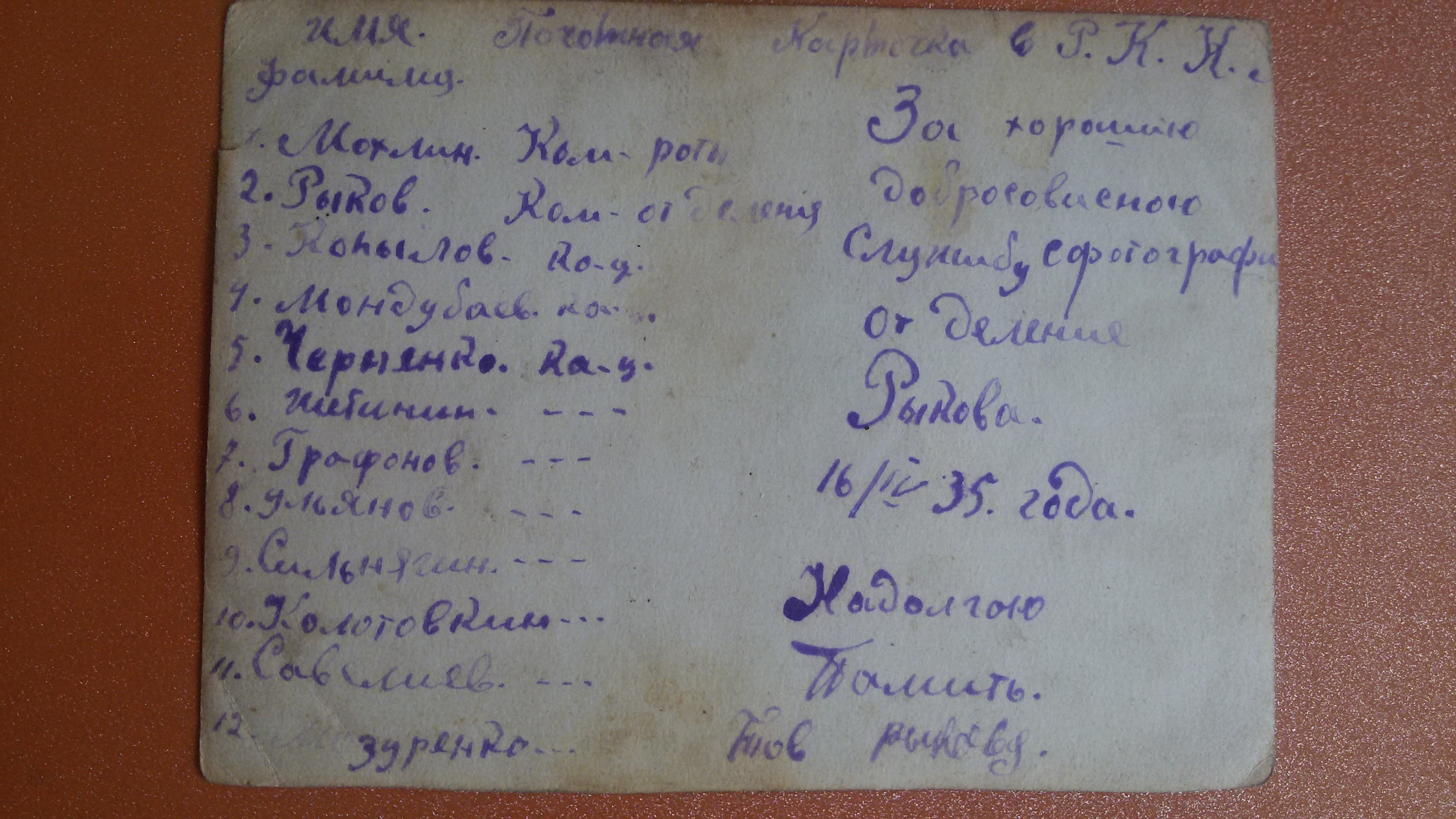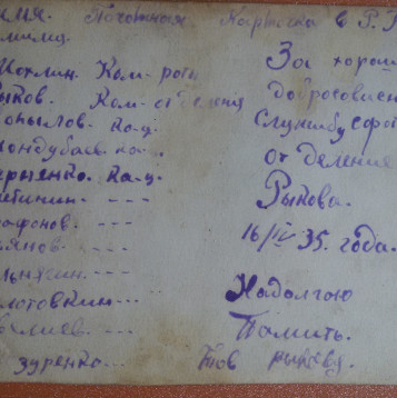 Рыков Иван Николаевич служил при Хилокском РВК (Забайкалье), которым был направлен воевать на защиту Родины. Боевые действия происходили в местностях Великие Луки. В бою получил множество осколочных ранений и был "выбит" правый глаз. Воинская часть отступила, Рыков И.Н. был направлен в госпиталь. Затем был Хилокском РВК снят с учета по приказу 336, ст. 98а.