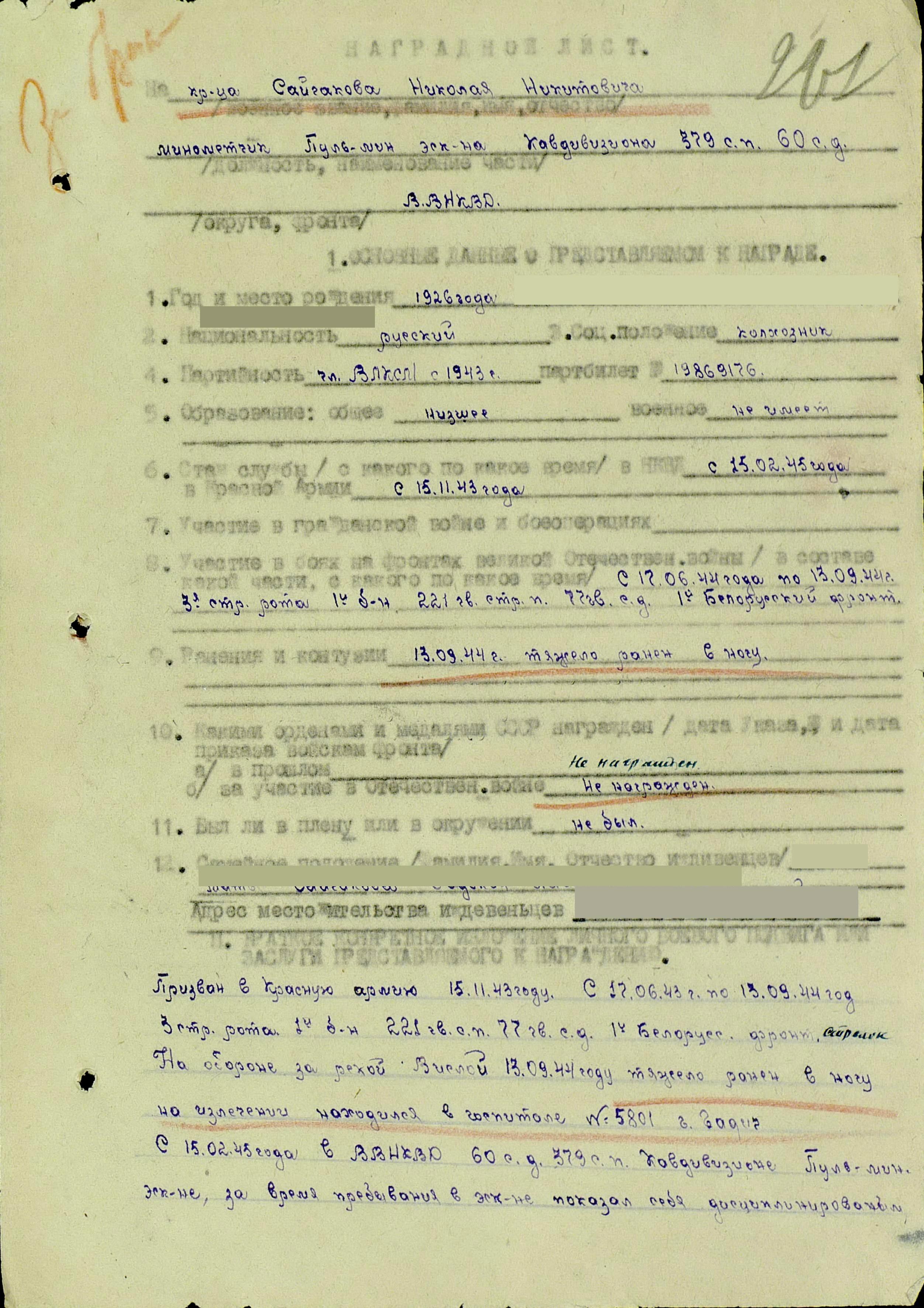 1.Военную присягу принял 12.12.1943г при 30
