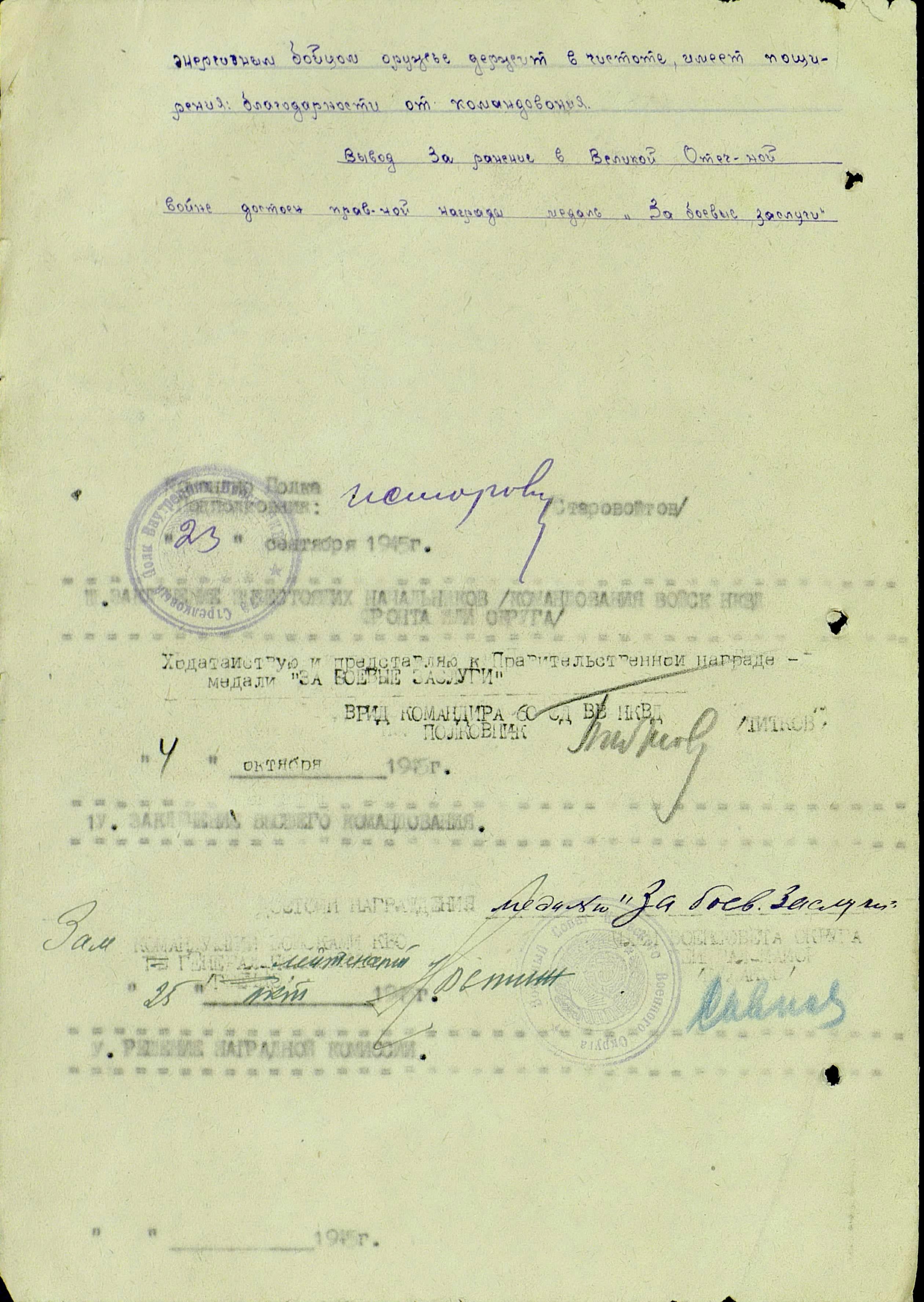 «За боевые заслуги».