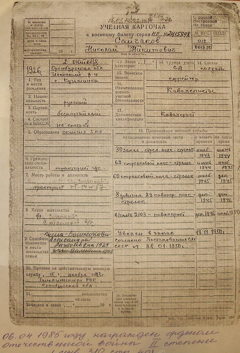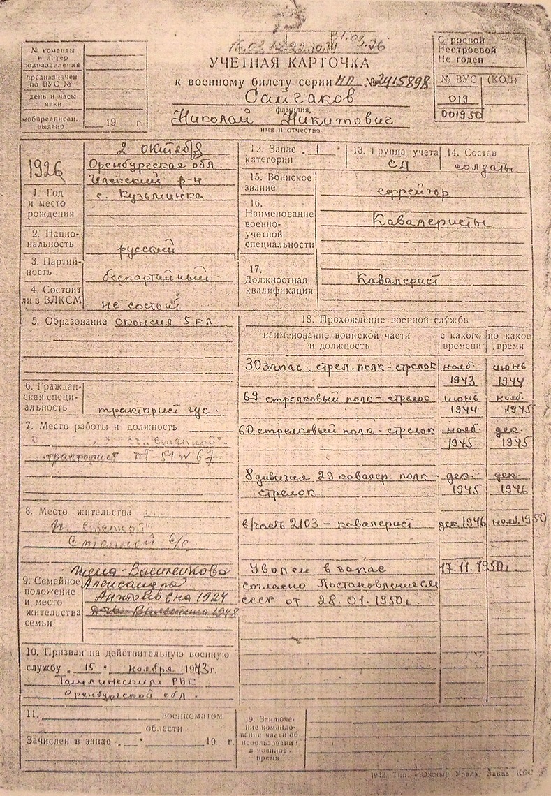 - кавалерист 12.1946г – 11.1950г
