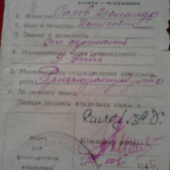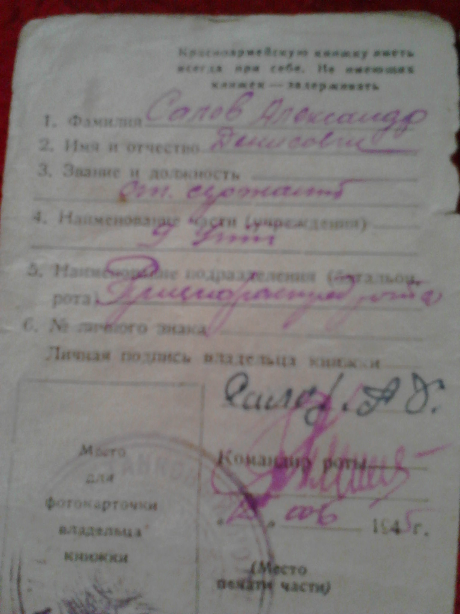 Место службы: 28 тп 16 гв. мехбр 6 гв. мк 4 ТА 1 Украинского фронта