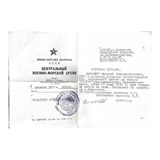 Николай Константинович родился 14.03.1912 г. в Ленинградской области, Н. Петергоф. Военкомат: Куйбышевский РВК, Ленинградская обл., г. Ленинград, Куйбышевский р-н. Дата и место призыва 13.07.1941г. Куйбышевский РВК, Ленинградская обл., г. Ленинград, Куйбышевский р-н. Воинское звание старшина 1 статьи. Воинская часть ОВР КБФ5 ДСКА ИО. Служил на катере МО-125 Краснознаменного Балтийского флота, погиб 27 июля 1943г. при подрыве катера на мине. Захоронен на кладбище о. Лавессари.