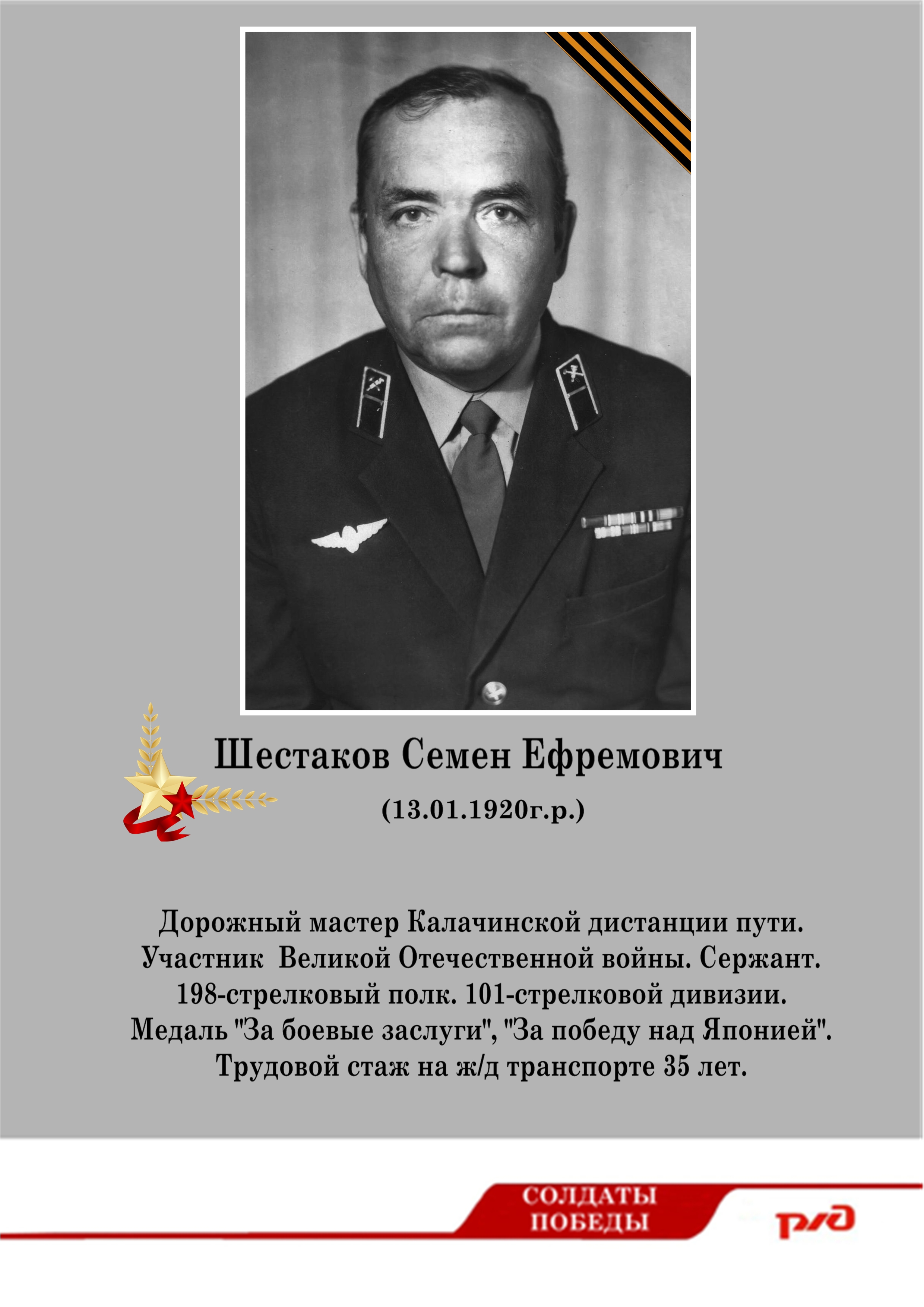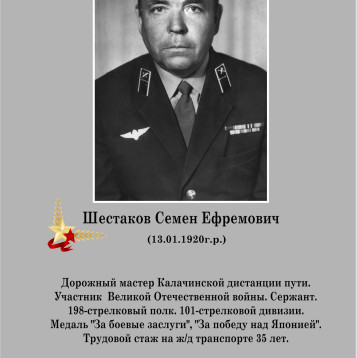 ШЕСТАКОВ СЕМЕН ЕФРЕМОВИЧ-(1920г.р.) Участник Великой Отечественной войны. Сержант 101 стрелковой дивизии. Медаль «За боевые заслуги».