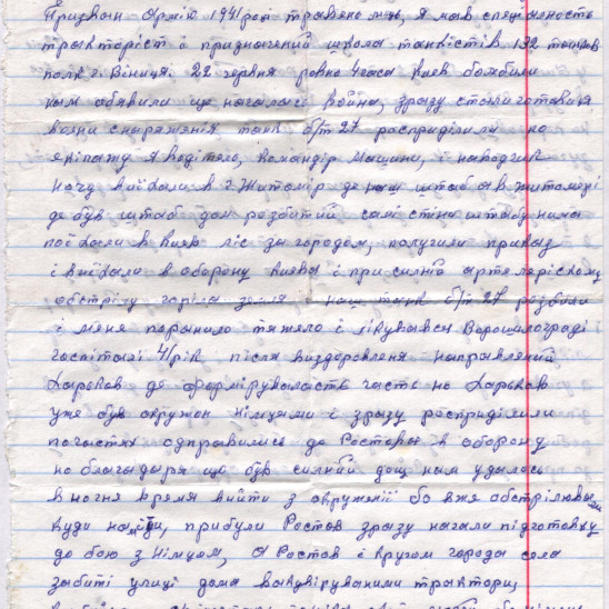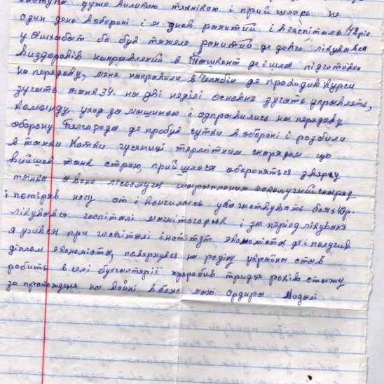 Симоненко Василий Саввич, родился 26 октября 1921 г, Украинская ССР, Полтавская обл., Покровско-Багачанский р-н, с. Свичковка (укр.), (Свечковка - на русском). В мае 1941 призван на срочную службу в РККА, в школу танкистов, в 132 танковый полк г. Винница, был механиком - водителем БТ-7. Участвовал в обороне г. Киева, где танк был подбит, получил ранение. Лечение проходил в г. Луганске (г. Ворошиловград, УССР), после выздоровление направлен в г. Харьков, где формировалась воинская часть, но так как г. Харьков в то время уже был оккупирован немцами, был направлен в Ростов-на-дону, куда смогли прорваться из окружения благодаря дождливой ночи, где заняли оборону. Будучи несколько дней в обороне получил ранение и был отправлен в госпиталь в г. Ашхабад. Так как ранение было тяжёлое, лечение было долгим. После выздоровления направлен в г. Ташкент на формировочный пункт, откуда направлен в Челябинск на две недели на курсы, изучать танк Т-34. По окончанию учёбы оправили на передовую, в оборону Белгорода, где был сутки в обороне, когда попаданием снаряда в танк были повреждены катки и гусеница в связи, с чем приняли бой вне танка. В том бою осколком снаряда потерял ногу. Это был 1943 г. Проходил лечение в госпитале в г. Магнитогорск. Там же будучи в госпитале прошёл обучение на экономиста и после освобождения Полтавщины вернулся домой. Проработал 30 лет в колхозе бухгалтером. Умер 25 января 2015 года г. Лубны, Украина.
