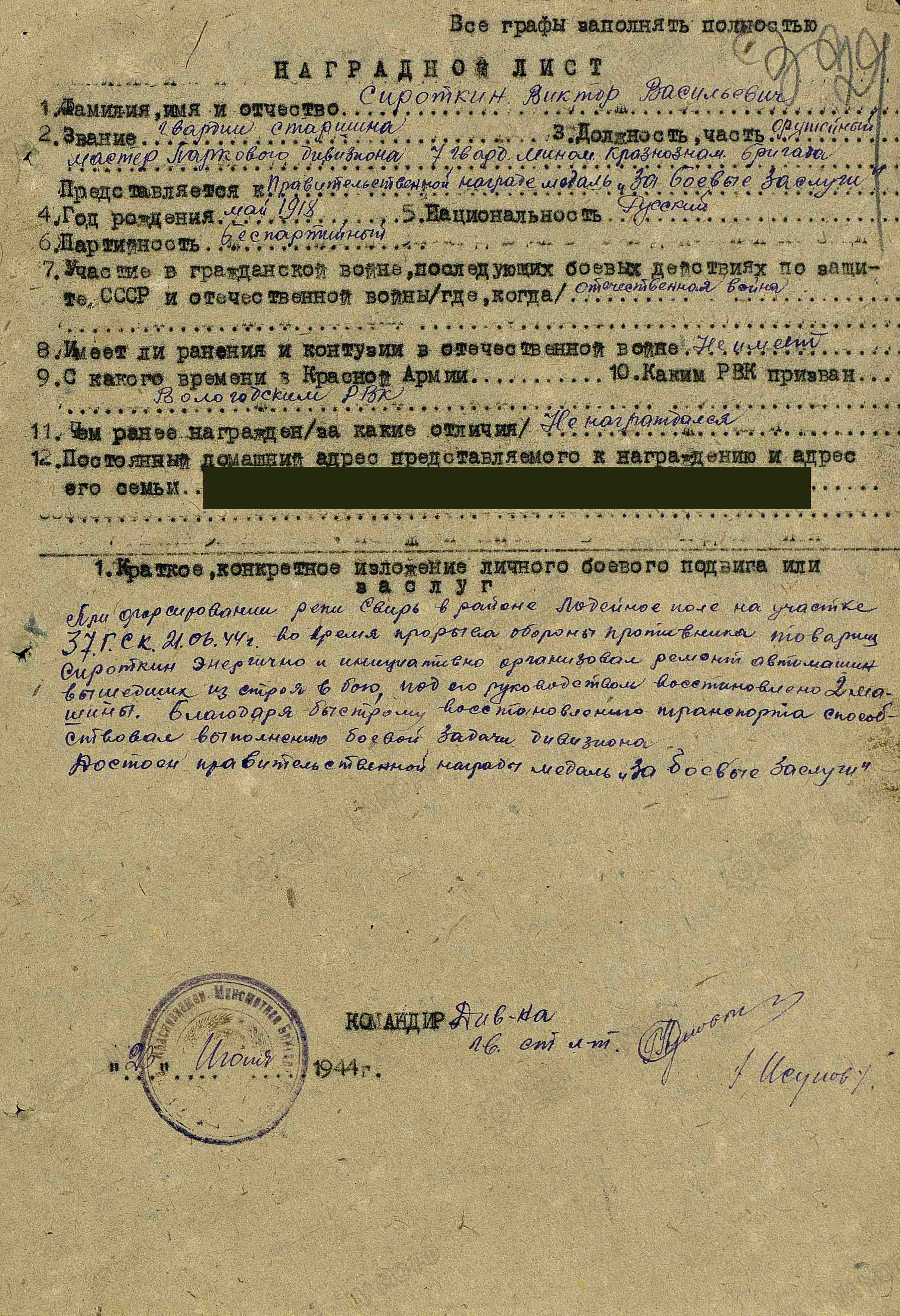 «Гвардии старшина Сироткин Виктор Васильевич «15