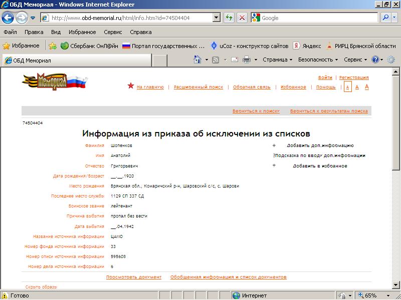 Мы нашли информацию о нём чисто случайно в интернете в 2015 году (в 70-летнюю годовщину Победы), вбив его фио в поисковике. Оказалось, что его родственников уже давно ищут...