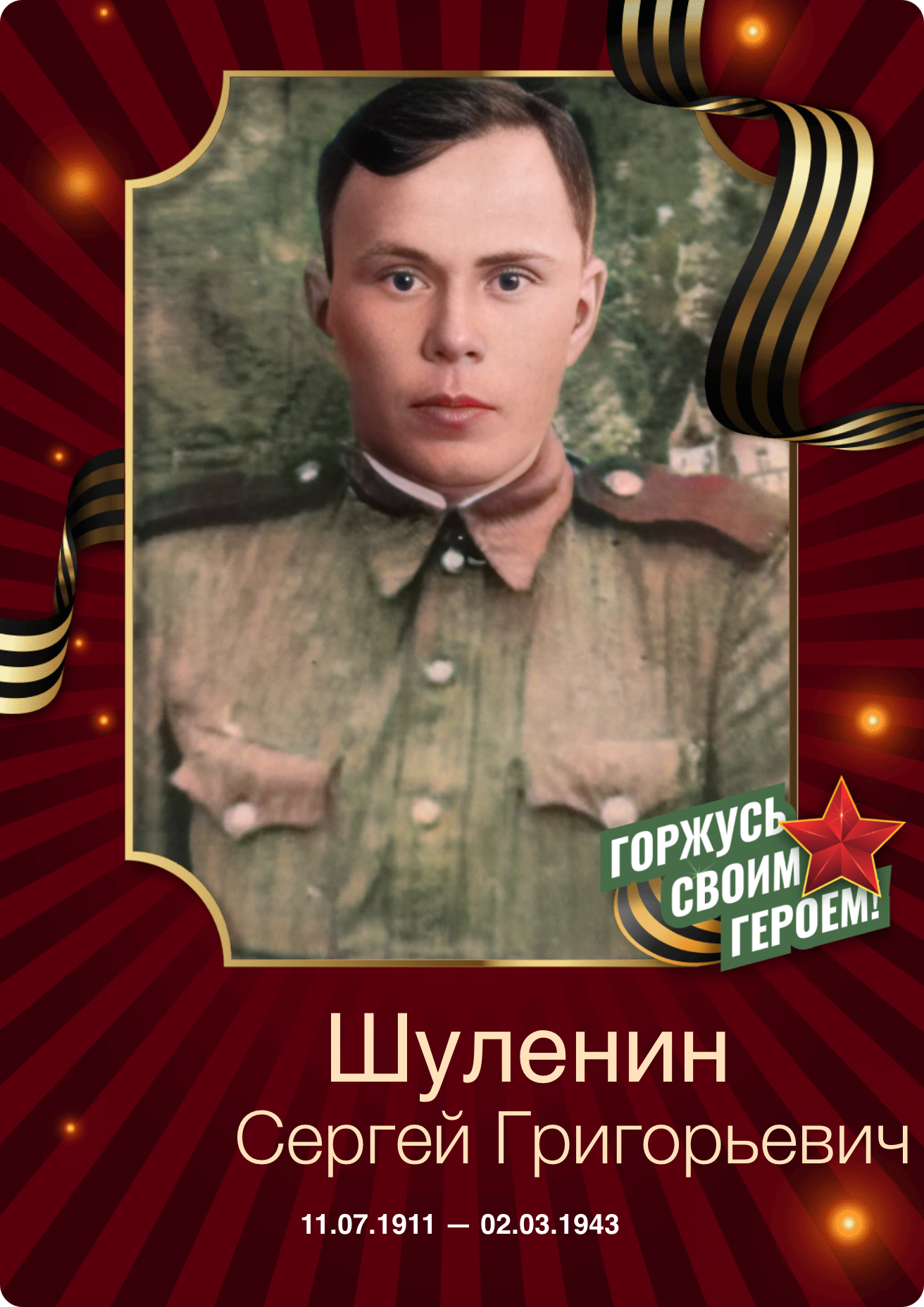 Погиб 02.03.1943г. в бою под Брянском (сейчас Калужская область, ранее Орловская область) при освобождении г. Жиздра. Похоронен Жиздринский район на холме, в 500 метрах от деревни Ослинка, 200 м от дороги Жиздра-Ослинка.