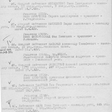 Боевой путь ветерана Командир миномётного взвода, погиб во время Курской битвы, похоронен в с. Гломаздино, Курской обл. Могила найдена лишь в 2014 году.