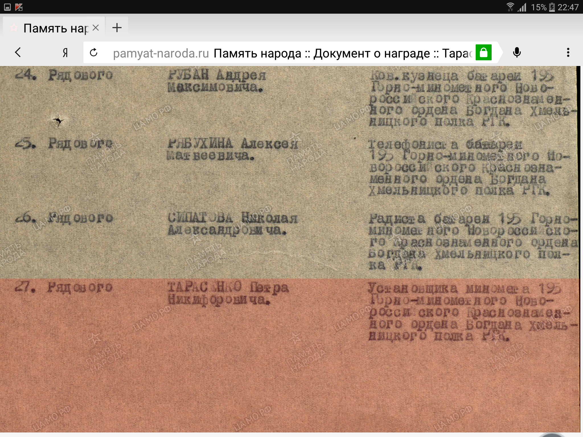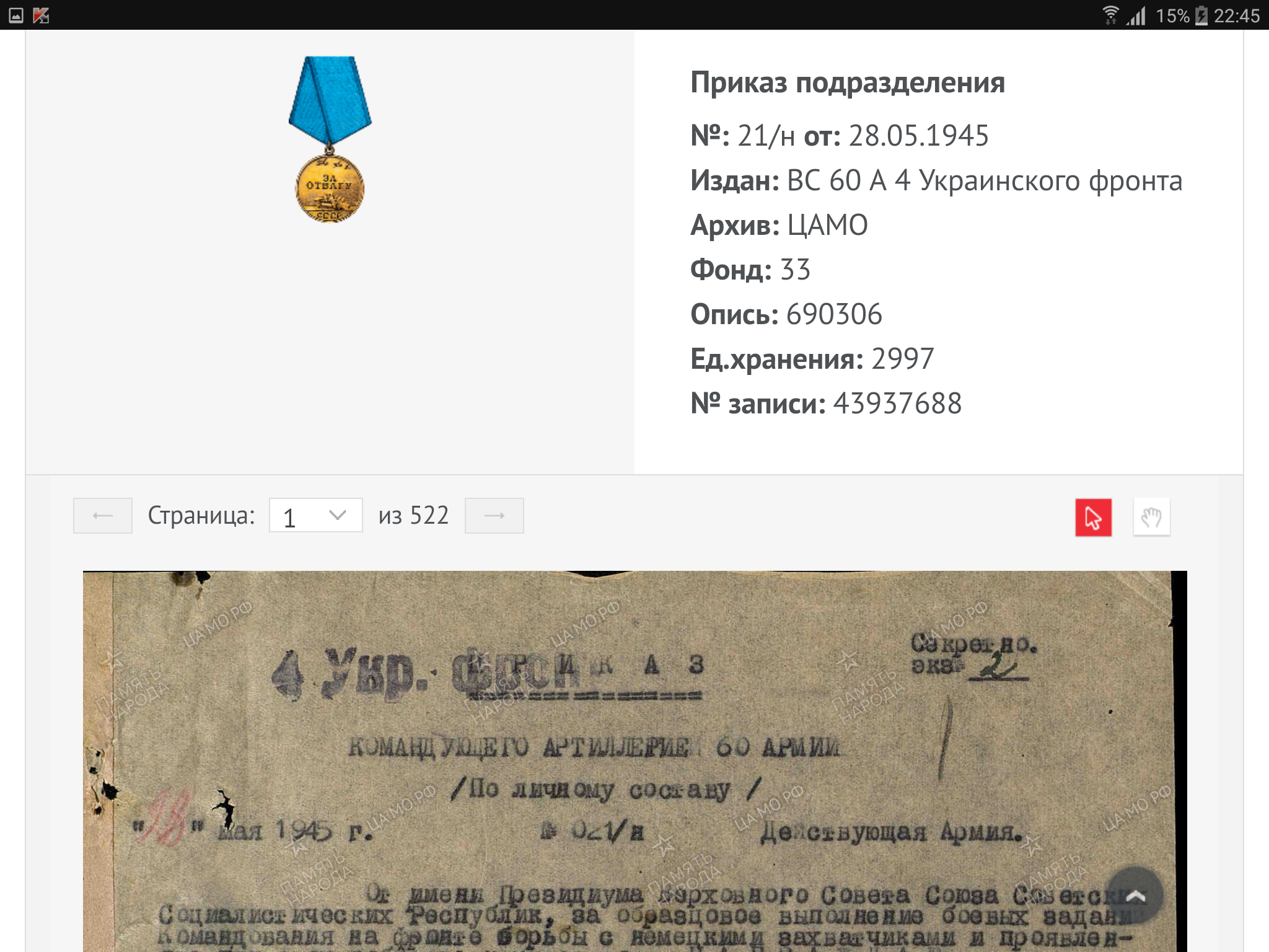 В Моравска-Остравской наступательной операции 26.04.45г когда наводчик выбыл из строя он работал за двоих ,от огня его миномета погибло около 30 немцев.30.04.45г. Он вплавь через ледяную реку Одер под сильным пулеметно-минометным огнем противника вовремя доставил важные документы командующему. В результате он получил воспаление лёгких., от чего умер в 1949 г.так и не сумев окончательно вылечиться.