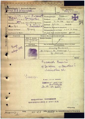 Проживал на момент призыва по адресу: М.О., г.Загорск, ул.Валовая, дом 6. (Родственники во время войны: брат Тихонов Николай, брат Тихонов Василий Григорьевич, брат Тихонов Петр Григорьевич, сестра Фролова(Тихонова) Варвара Григорьевна) Призван в ряды РККА 25.10.1939 года Загорским ГВК Московской области. Учатвовал в войне с Финляндией. С началом боевых действий против Финляндии в «зимней войне«, 18 декабря 1939 г. на аэр. Палдиски в Эстонию были перебазированы 3 самолета И-153 из состава 61-й ИАБ ВВС БФ. Из них был сформирован 30-й отдельный истребительный авиационный отряд, вошедший в 10-ю смешанную авиационную бригаду ВВС БФ. В ходе войны с финнами в Эстонию дополнительно были перебазированы истребители 61-й ИАБ из-под Ленинграда. В начале мая 1940 г. 30-й ОИАО был развёрнут в 30-ю отдельную истребительную авиационную эскадрилью. В начале августа 1940 г. 30-я ОИАЭ была переименована в 94-ю отдельную истребительную авиационную эскадрилью 10-й АБ ВВС БФ ( 94-я отдельная морская истребительная авиационная эскадрилья ВВС ВМФ, В соответствии с картотекой моряков (Архив Военно-Морского Флота, г. Гатчина) с 1939 года проходил службу краснофлотец Тихонов П.Г. в этом подразделении. Уже через месяц, в сентябре 1940 года, на базе эскадрильи был сформирован 71-й истребительный авиационный полк. Тихонов П.Г. Попал в плен 5 октября 1941 года под гор.Ригой, умер в январе 1942 г. в лагере Stalag XD (310) Витцендорф. Номер записи 300102490 Тихонов Павел Григорьевич, 17.12.1920 г.рождения Место рождения Московская обл.,солдат (рядовой), Лагерный номер 43920 Дата пленения 05.10.1941, Место пленения гор. Рига Лагерь шталаг X D (310), Погиб в плену, Место захоронения Витцендорф Название источника информации ЦАМО Номер фонда источника информации 58 Номер описи источника информации 977520 Номер дела источника информации 1562. Проходил службу с 25.10.1939 года в должности оружейного мастера в 71 ИАП ВВС БФ (п.п.1071). 71-й истребительный авиационный Краснознамённый полк ВВС Балтийского флота cформирован в сентябре 1940 года (Последующие переименования:с 31 мая 1943 года Приказом Наркома ВМФ № 190 - 10-й гвардейский истребительный авиационный полк ВВС Балтийского флота).В составе действующей армии во время ВОВ c 22 июня 1941 по 31 мая 1943 года. На 22 июня 1941 года базируется на аэродромах под Таллином: Лагсберг (56 И-153) и Юлемисте (3 МиГ-3, 8 Як-1, 3 И-15 бис, 2 УТ-1, 1 УТ-2, 3 У-2).С начала войны прикрывает с воздуха Таллин и острова Моонзундского архипелага. В августе 1941 года полк в основном был задействован в ударах и прикрытию ударов по колоннам противника, которые продвигались к Таллину, действует в района Нарвы, Кингисеппа, Волосово, а также прикрывает конвои судов, которые эвакуировались из Таллина. В конце августа 1941 года остатки полка перелетели в Ленинград.